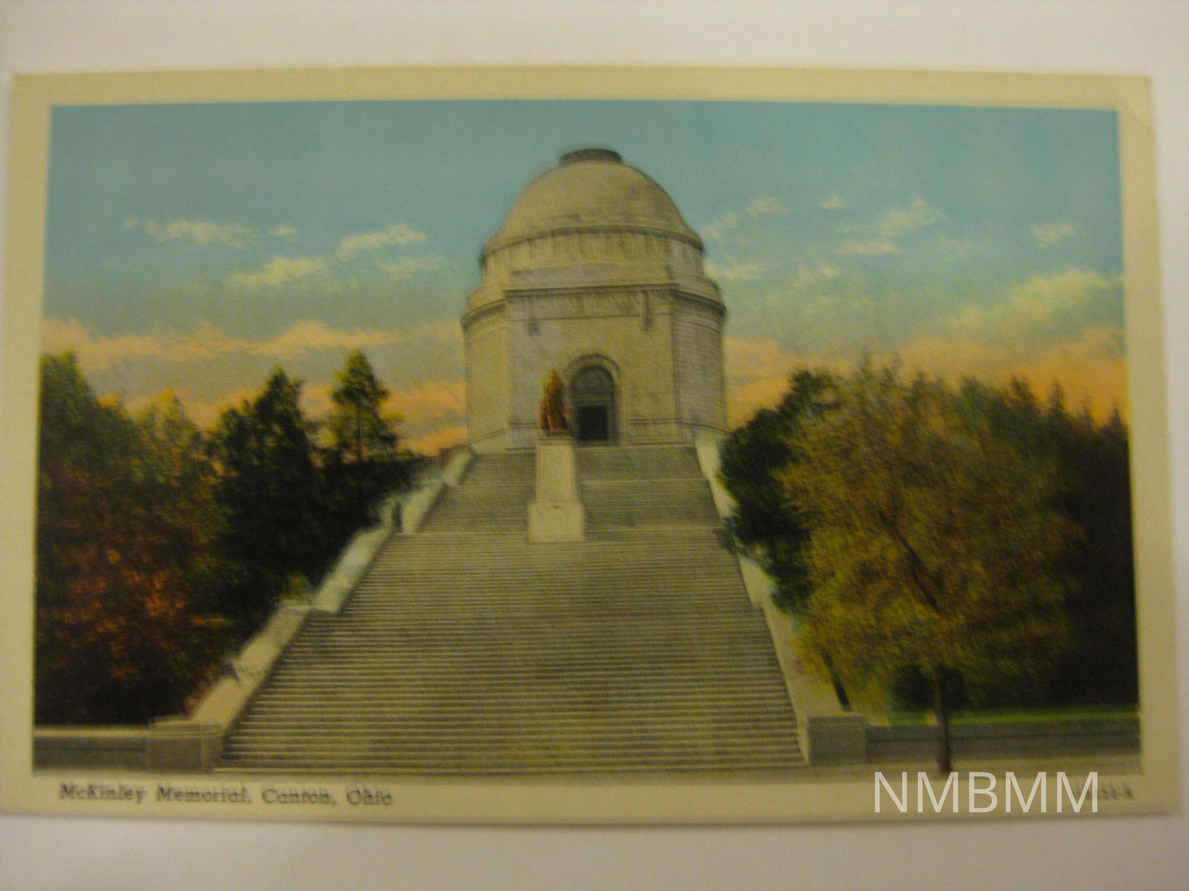 This item is a postcard depicting the front view of the tomb and memorial dedicated to President McKinley in Canton, Ohio, with the memorial, stairs and statue pictured.Collection
