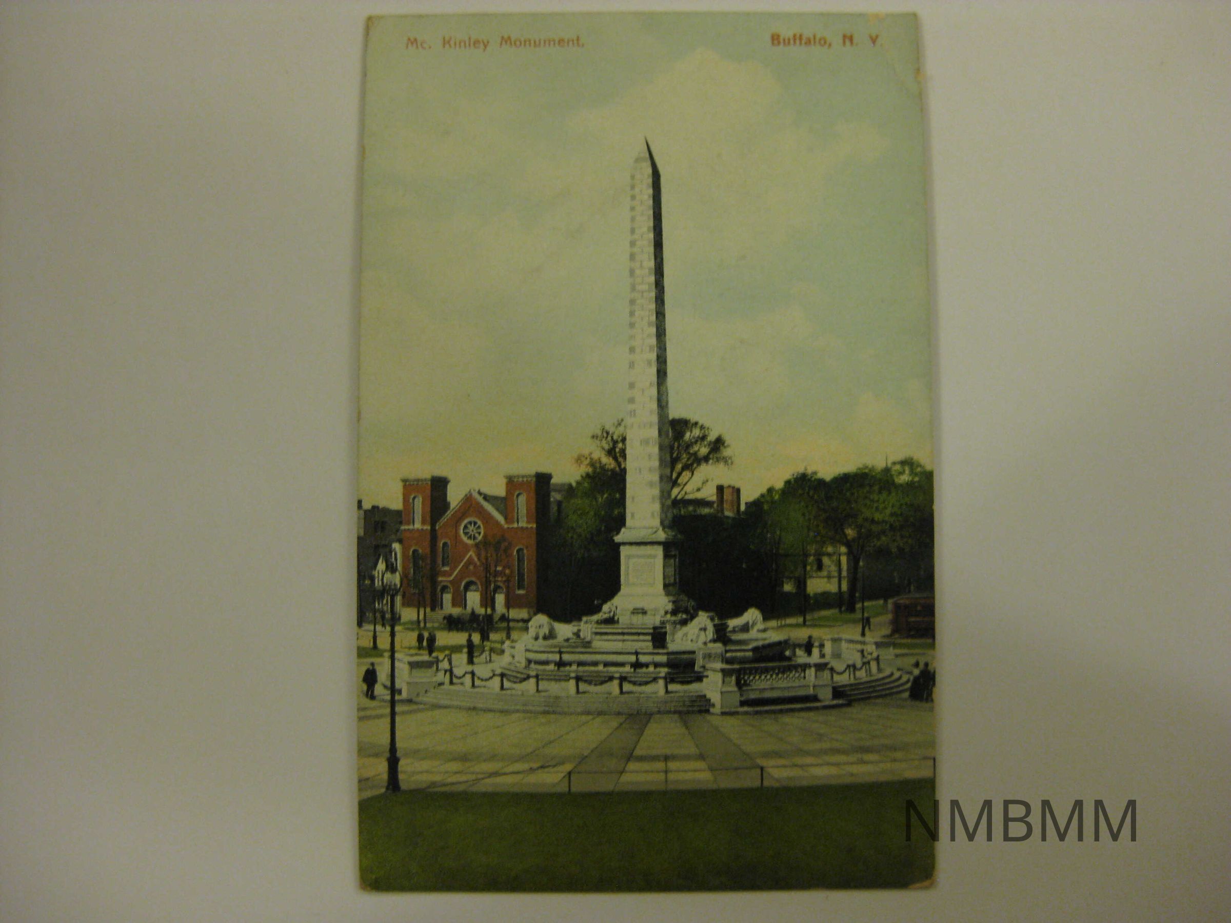 This item is a postcard depicting the McKinley Monument that was constructed in Buffalo, NY. The monument is in the foreground, with a church in the background. Published by The Buffalo News Company, Buffalo, NY.Collection