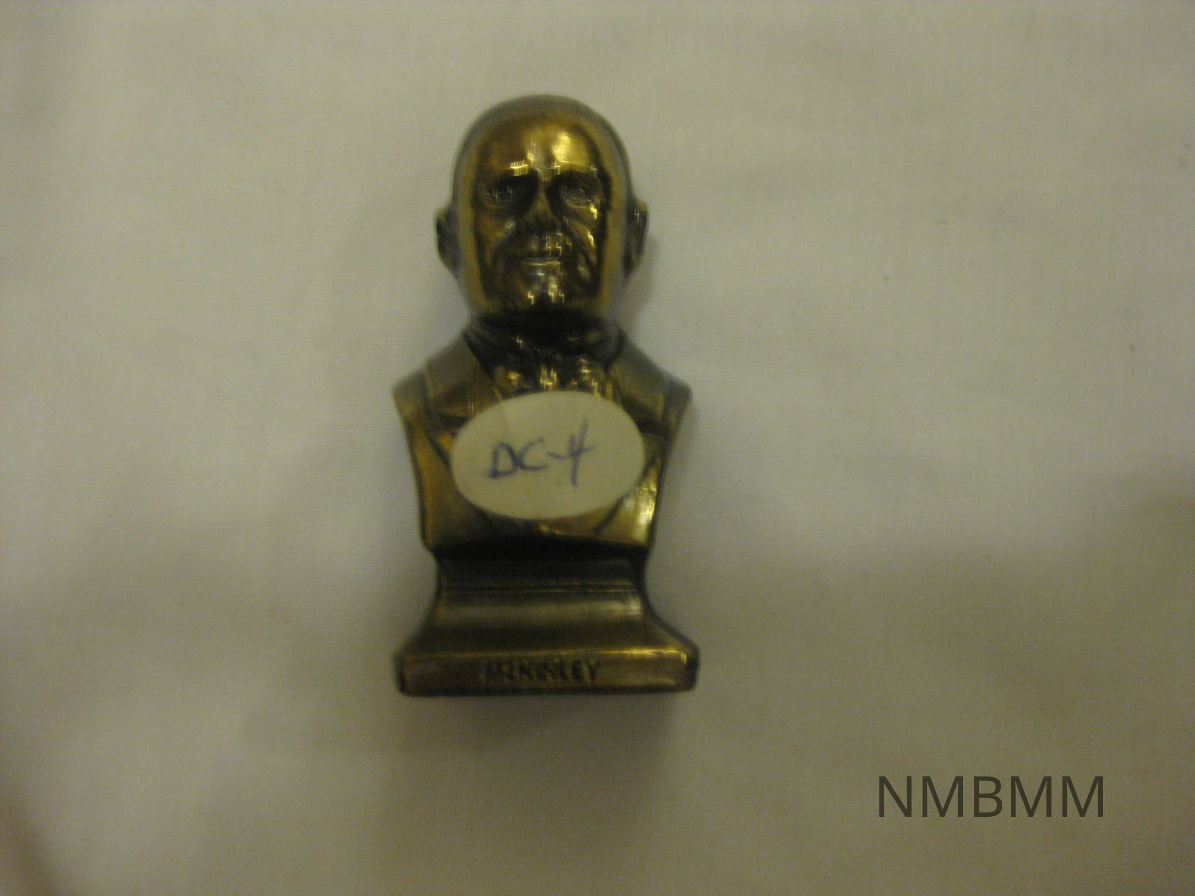 The item is a miniature metal bust of McKinley. "McKinley" is etched across the bottom. The statue is slightly tarnished. 2.5 by 1 1/8Collection