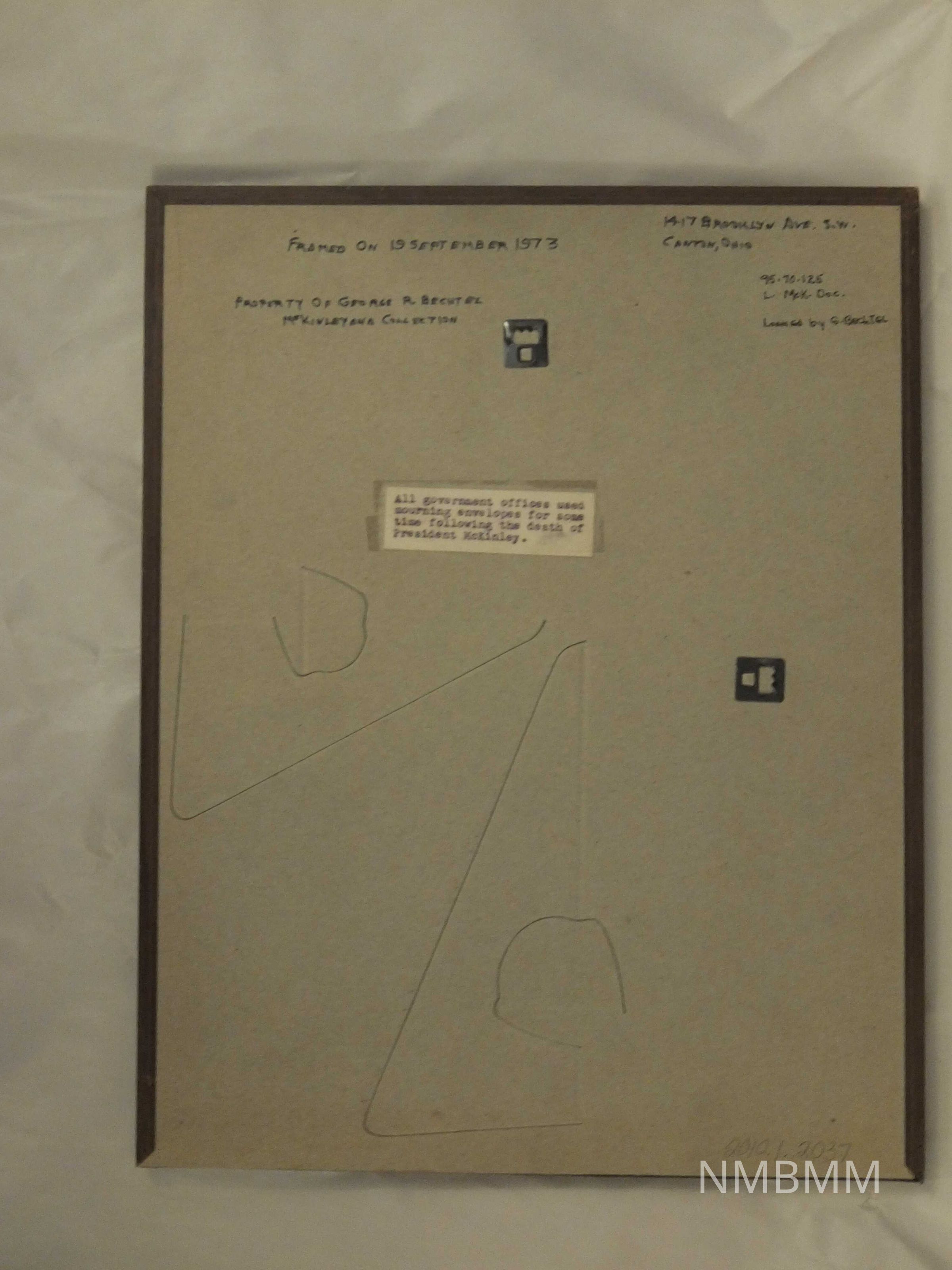 "All government offices used mourning envelopes for some time following the death of PResident McKinley."Collection