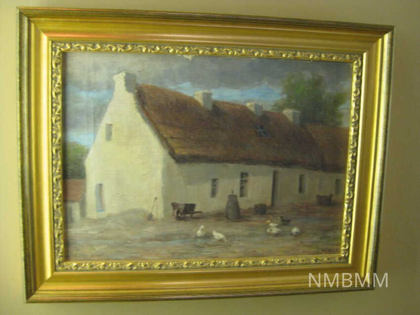 OIL PAINTING OF MCKINLEY ANCESTRAL HOME. COLOR. GOLD METAL FRAME. BY HENRY HAMMOND AHL. 14" X 17" FRAMED BY LIBRARY.Collection