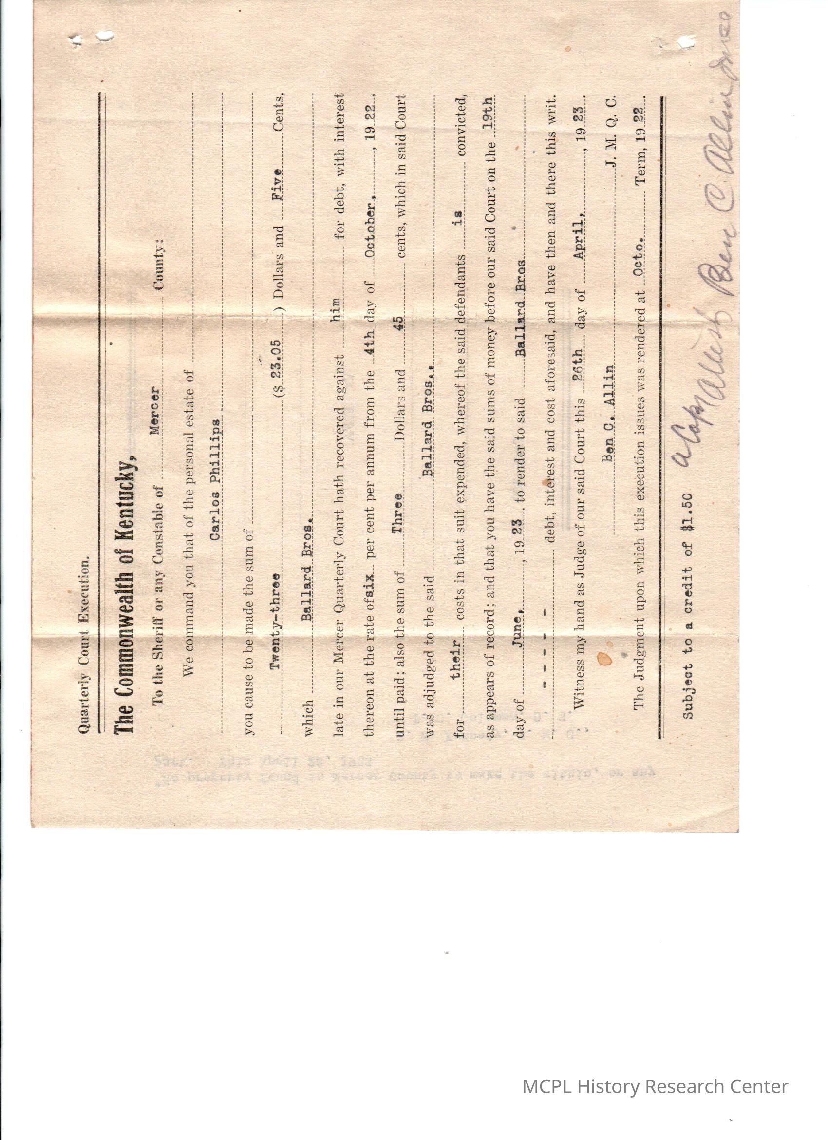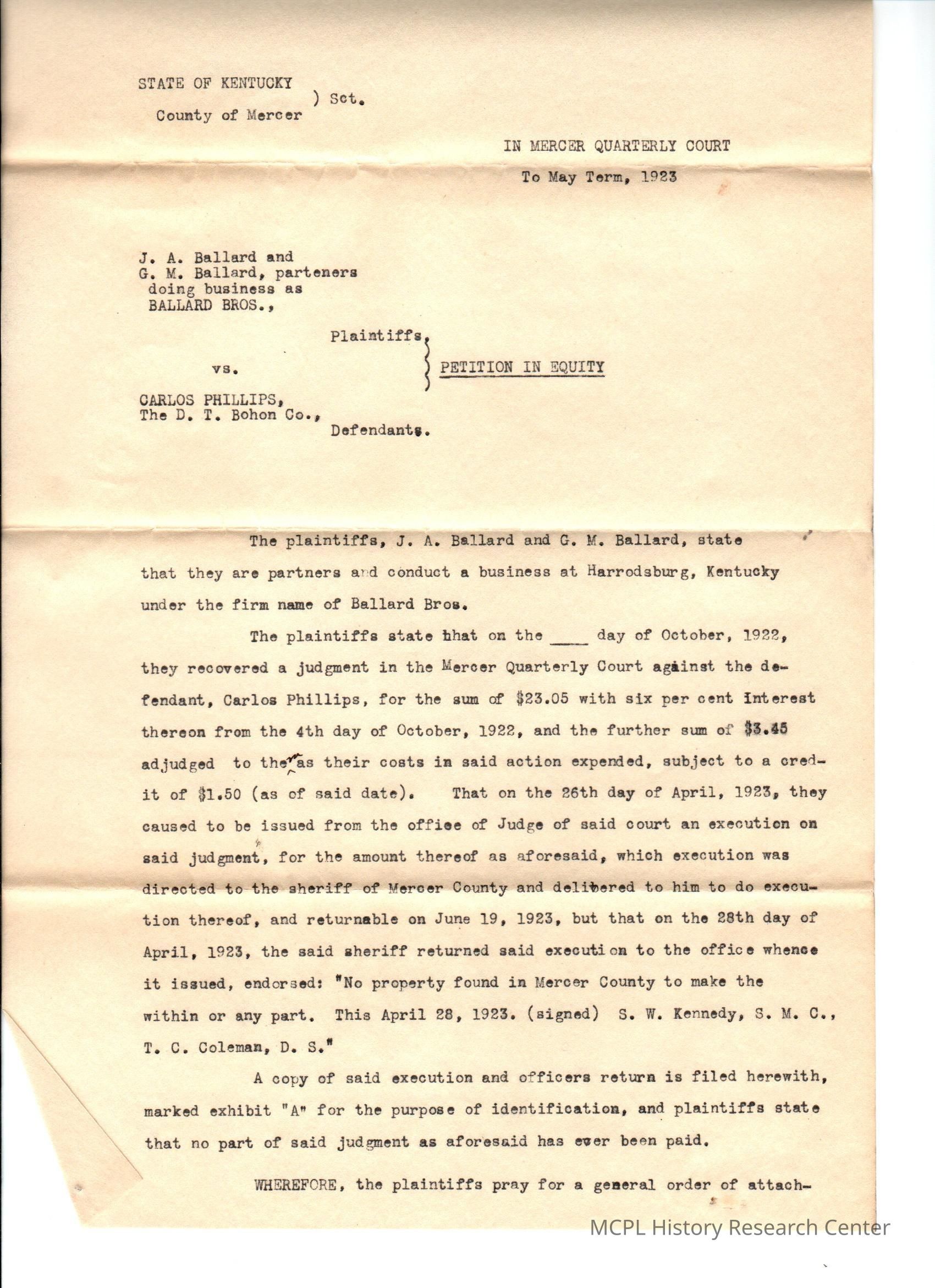 Ballard Brothers v C Phillips