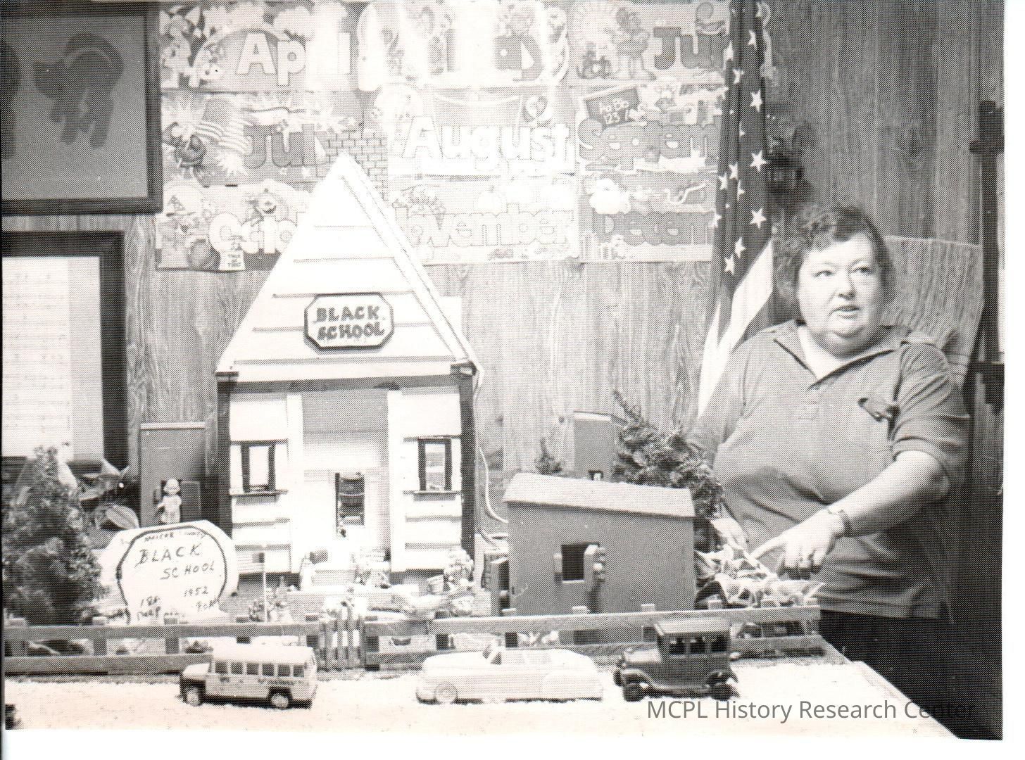 Dorothy Tyler shows off a model of the Black School.Collection