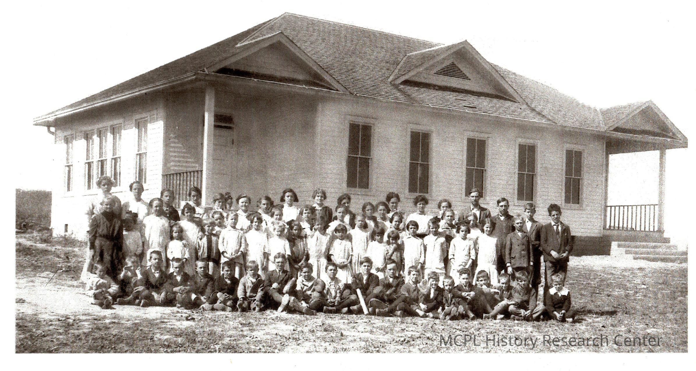 (third and fourth row L to R): Klyta Gabhart, Opel Burns, Bessie Jenkins, Nannie Mae Sanford, Opal Burton, Valeria Burns, Lavena Massie, Viola Louallen, Minnie Louallen, Elsie Best, Viola Sanders, Florence Burns, Opal Burns, Florence Royalty, Owen Sanford, Mary B. Vooris, Neoma Sandford, Eva Burns, Retta Best, Maurice L. Royalty, Bessie Jenkins, Addie Carr, and teachers Anne Grigsby and Mrs. I.C. JamesCollection