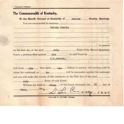 CA Hardin v Calvin Travis