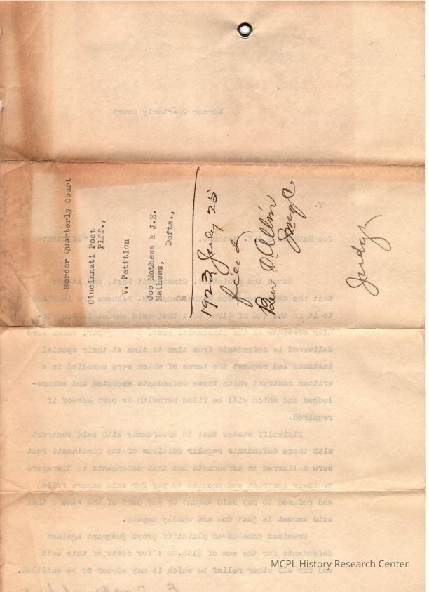Cincinnati Post v Joe MathewsEntry/Object ID