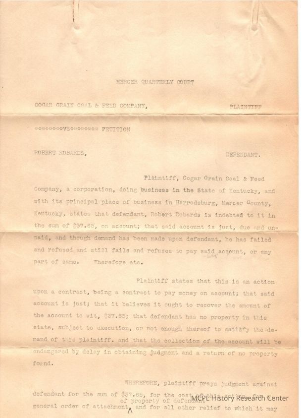Cogar Grain, Coal & Feed v R Robards