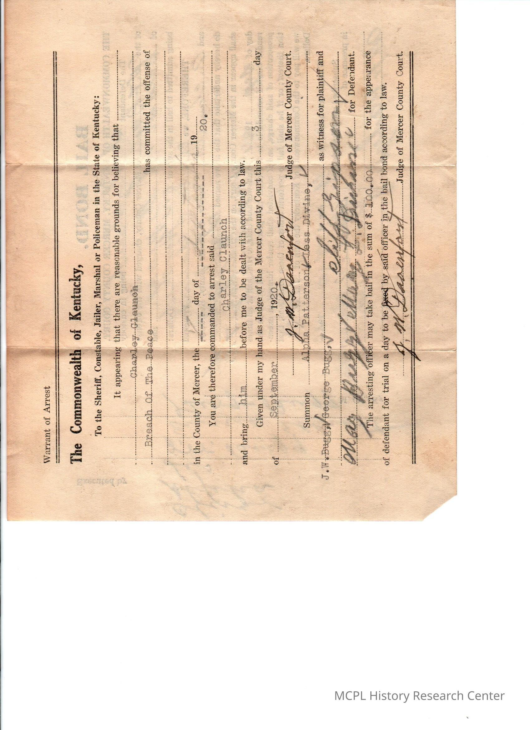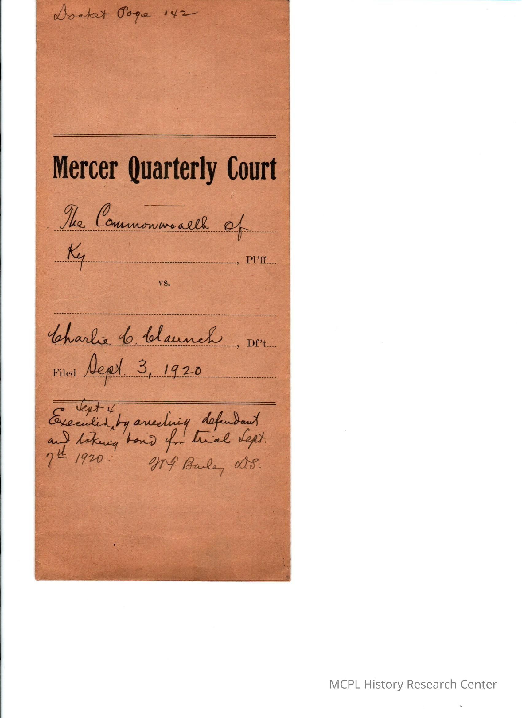 Commonwealth of Kentucky v C Claunch