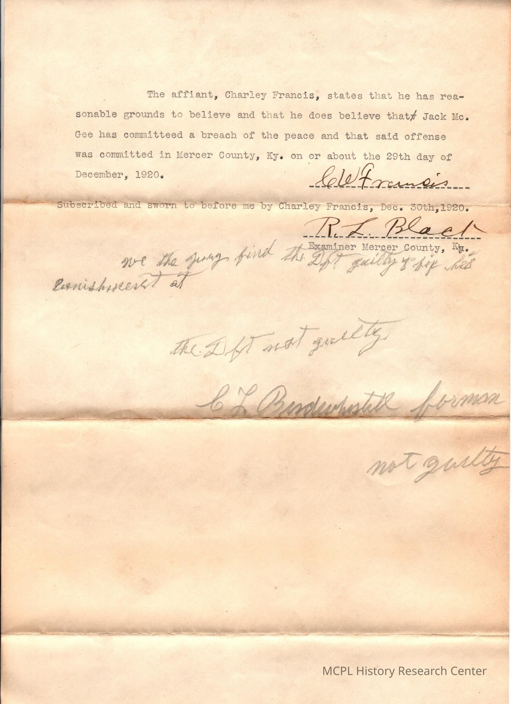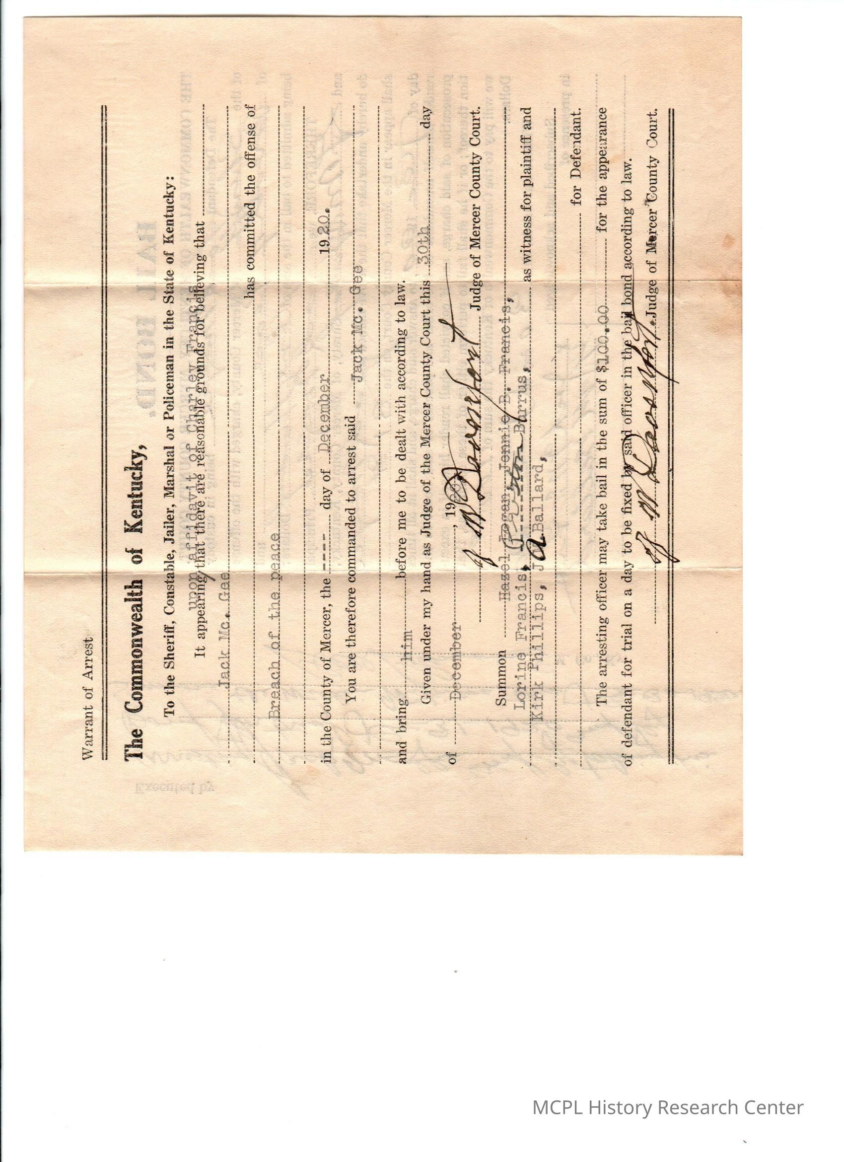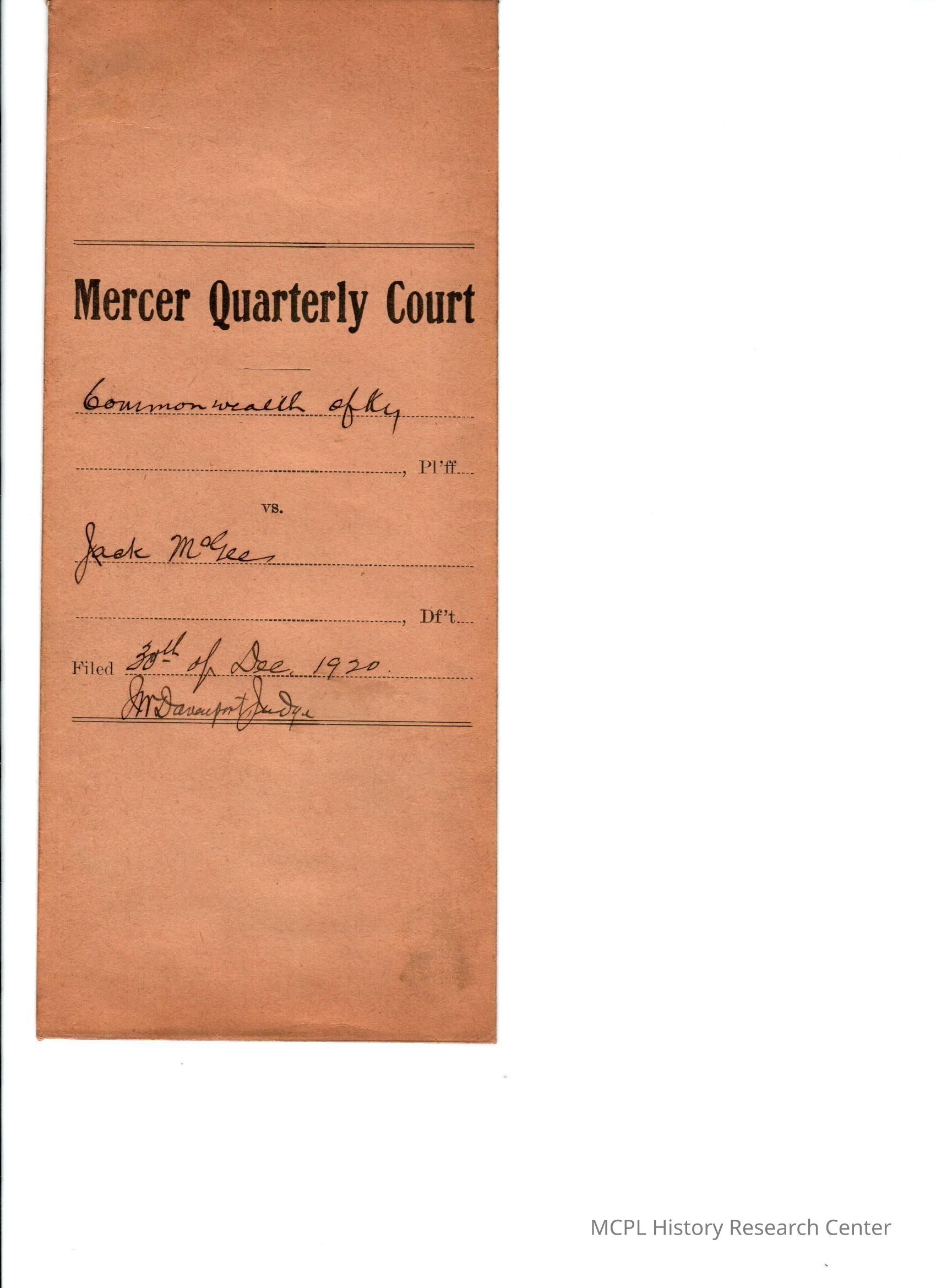Commonwealth of Kentucky v J McGee