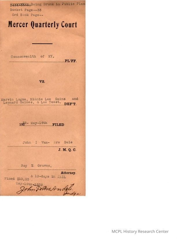 Commonwealth of Kentucky v M LogueEntry/Object ID