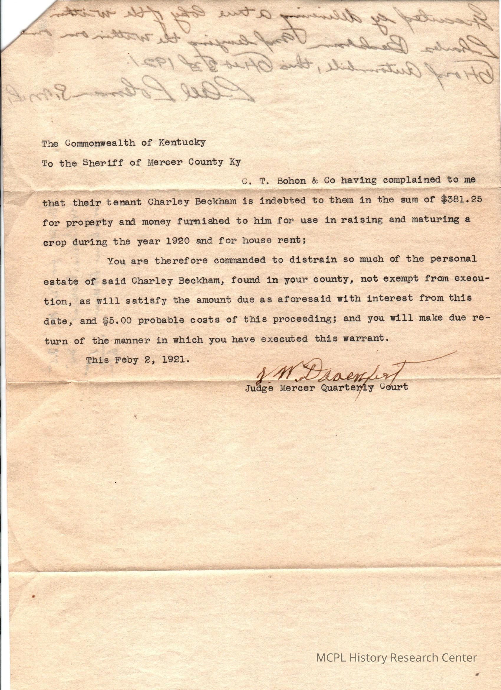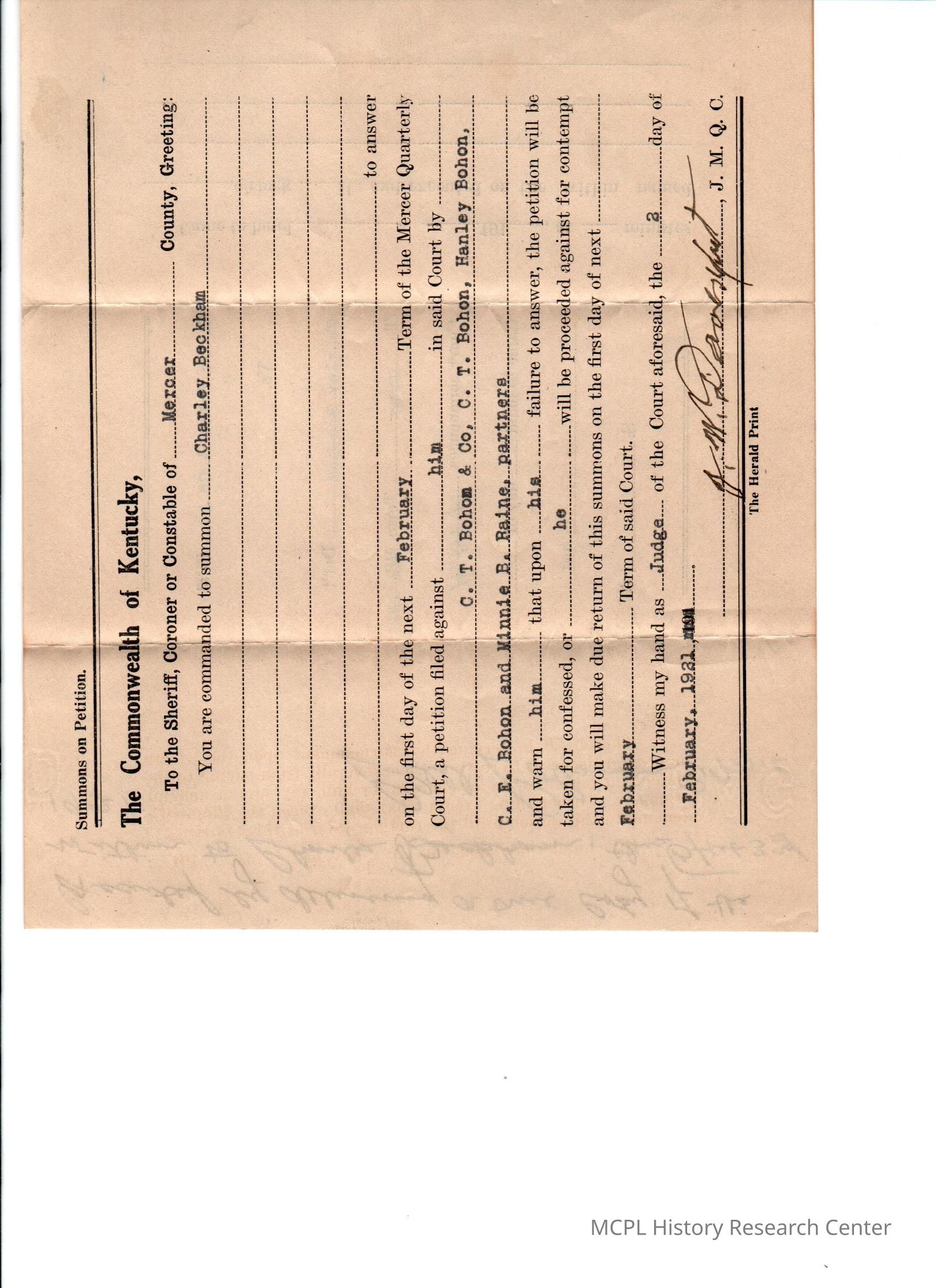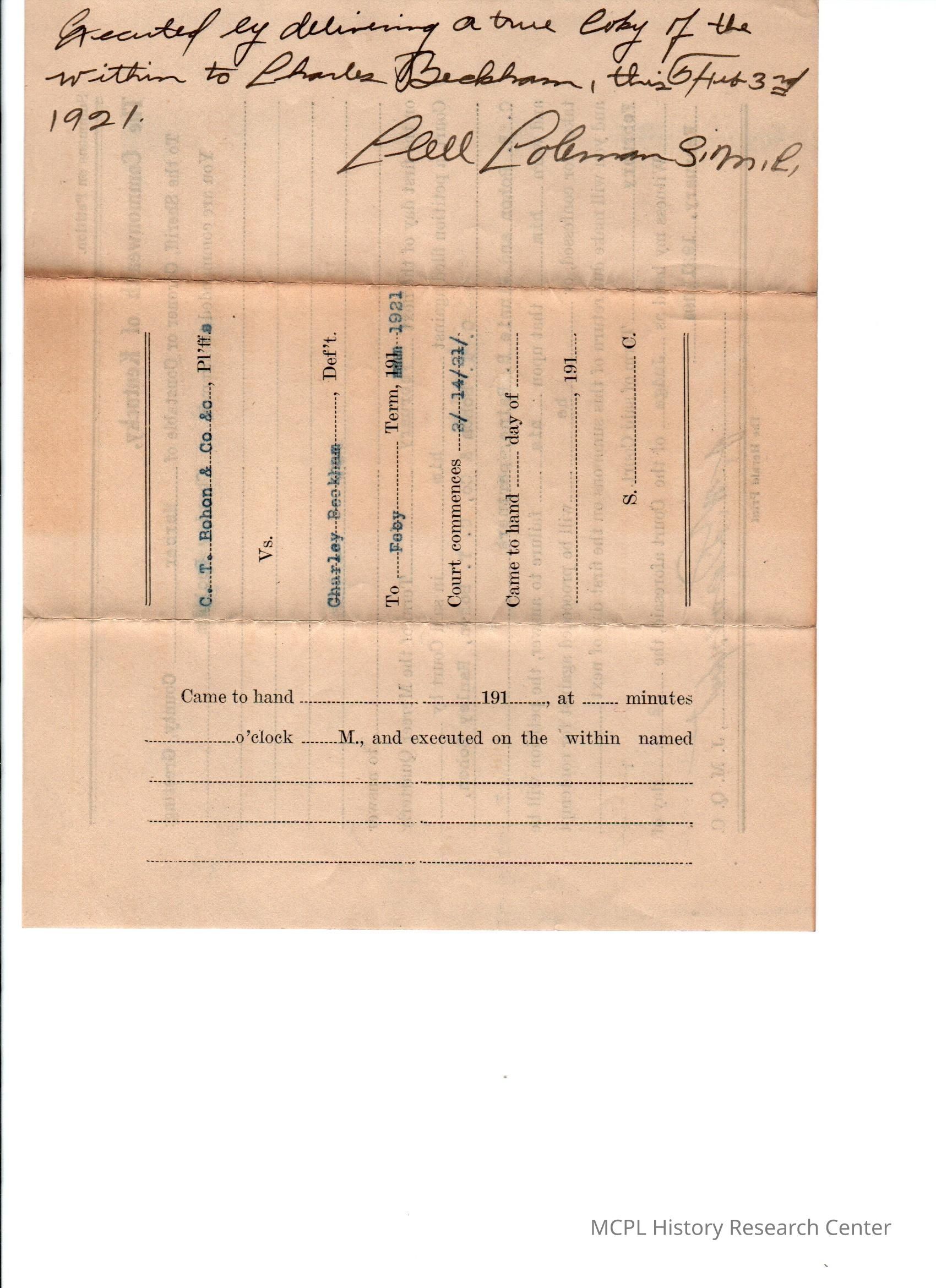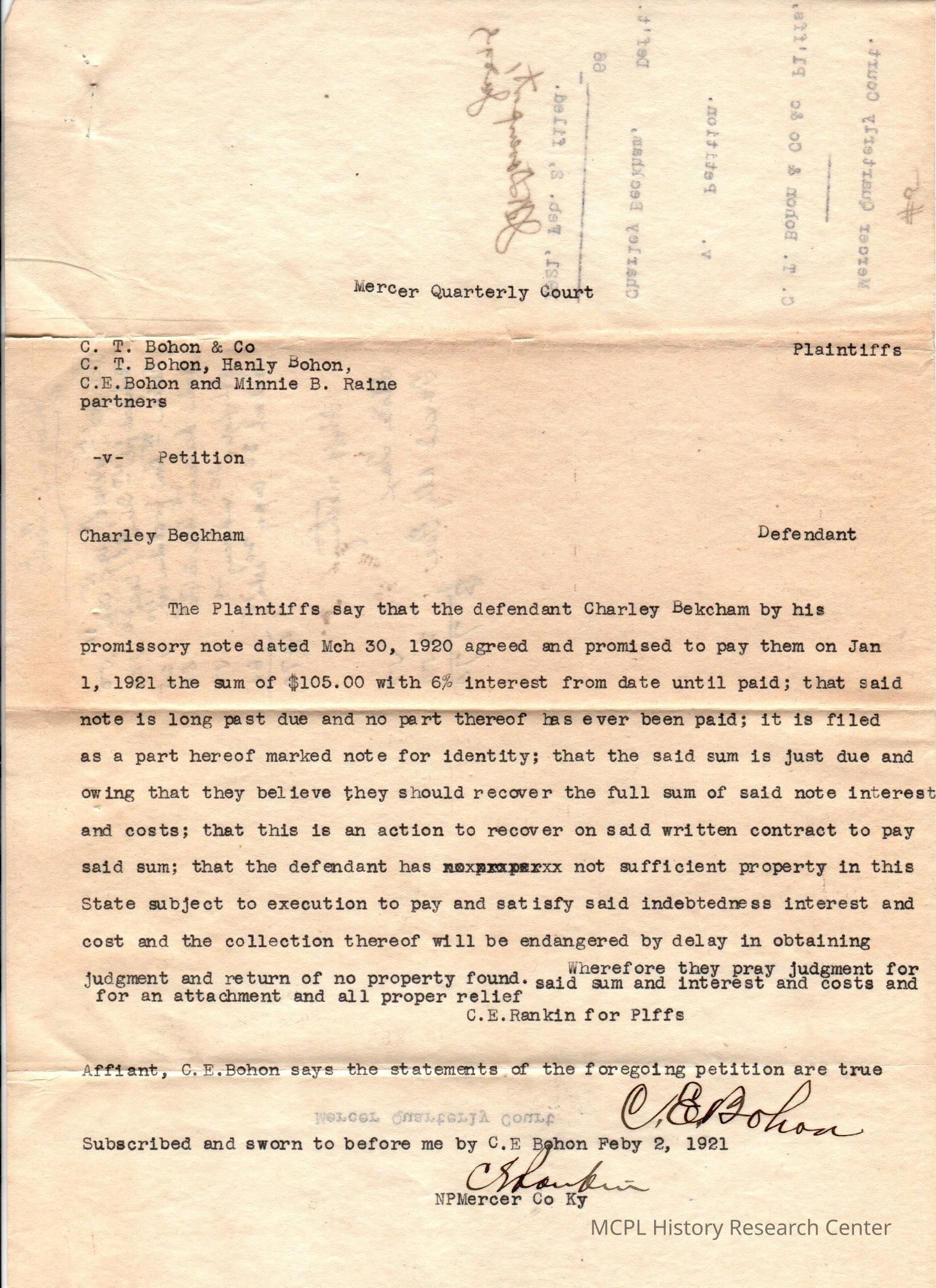CT Bohon v C Blakeman