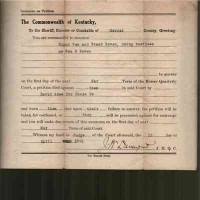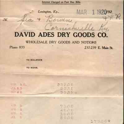 David Ades Dry Goods Co v F BowenEntry/Object ID