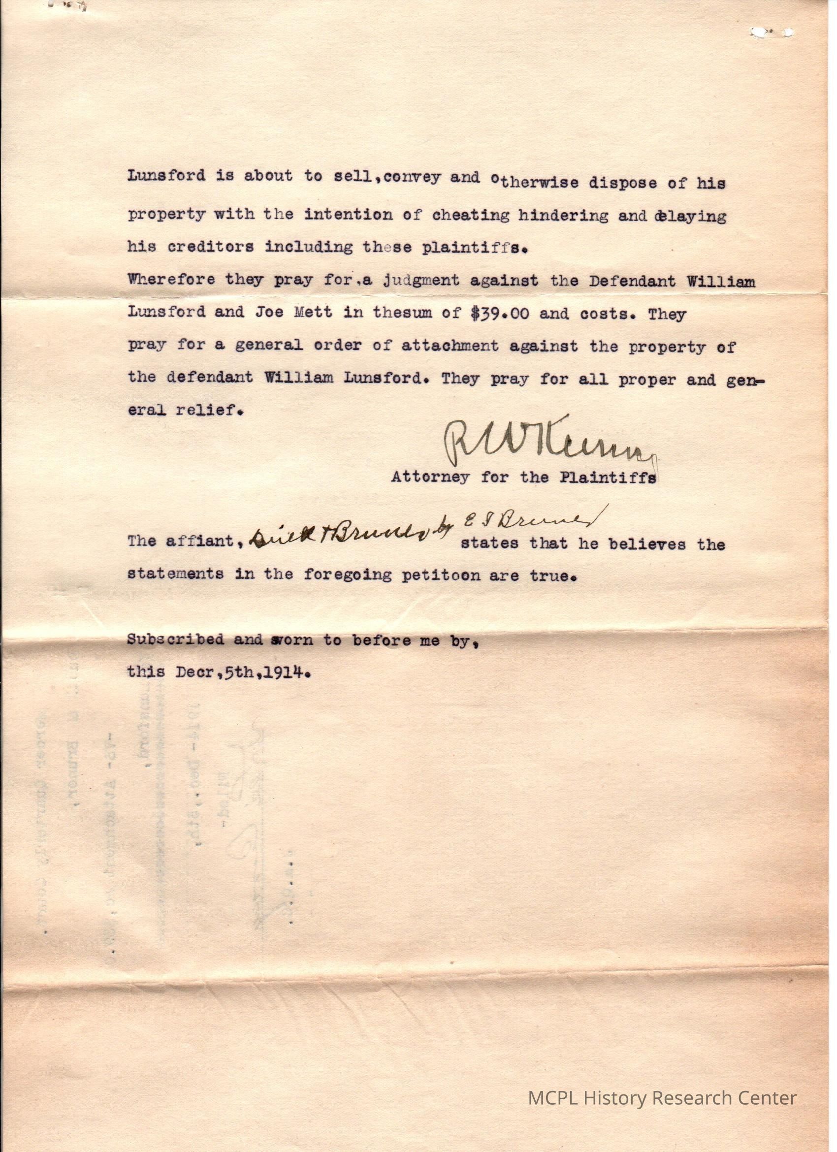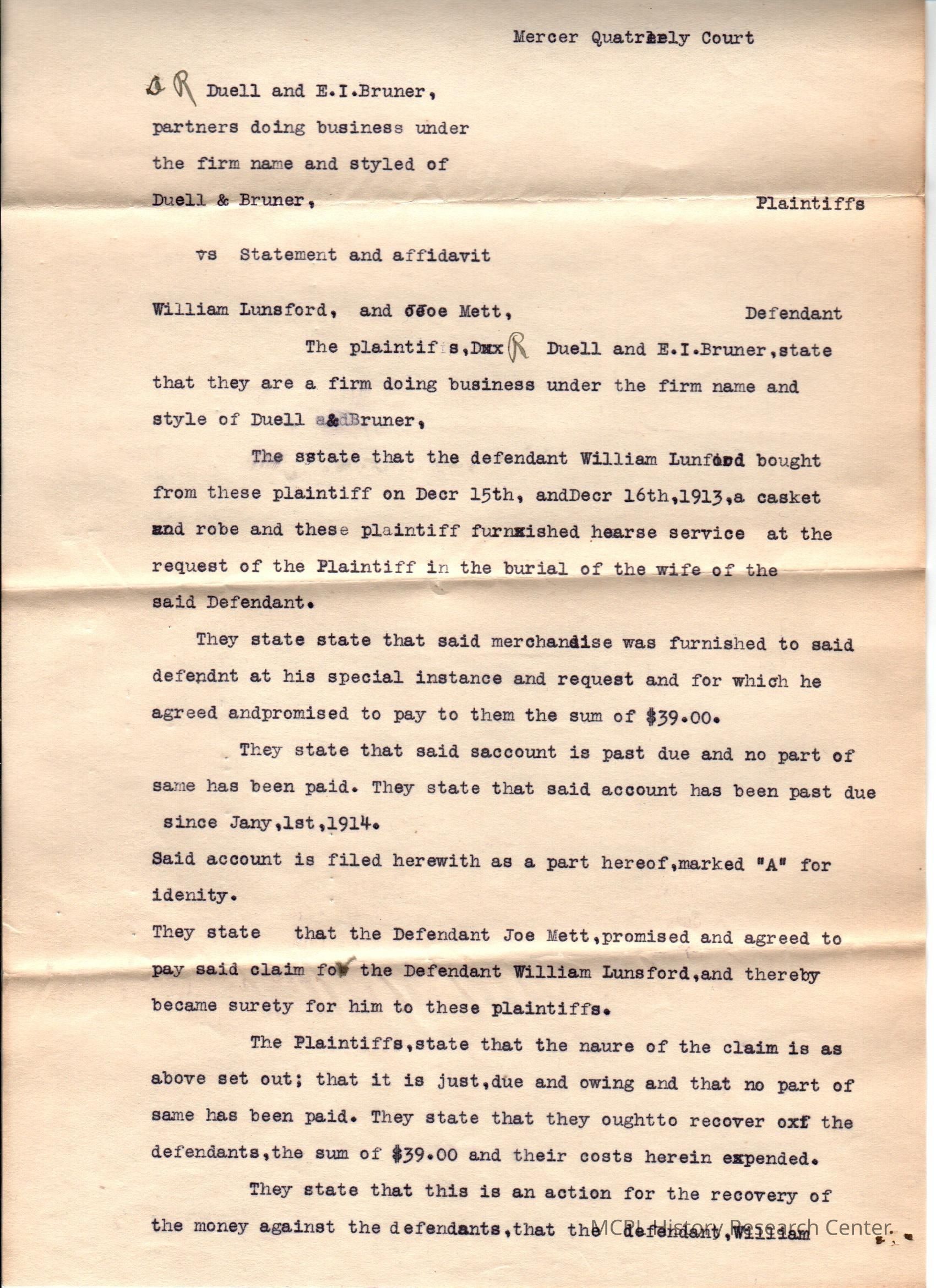 Duel & Bruner v W Lunsford