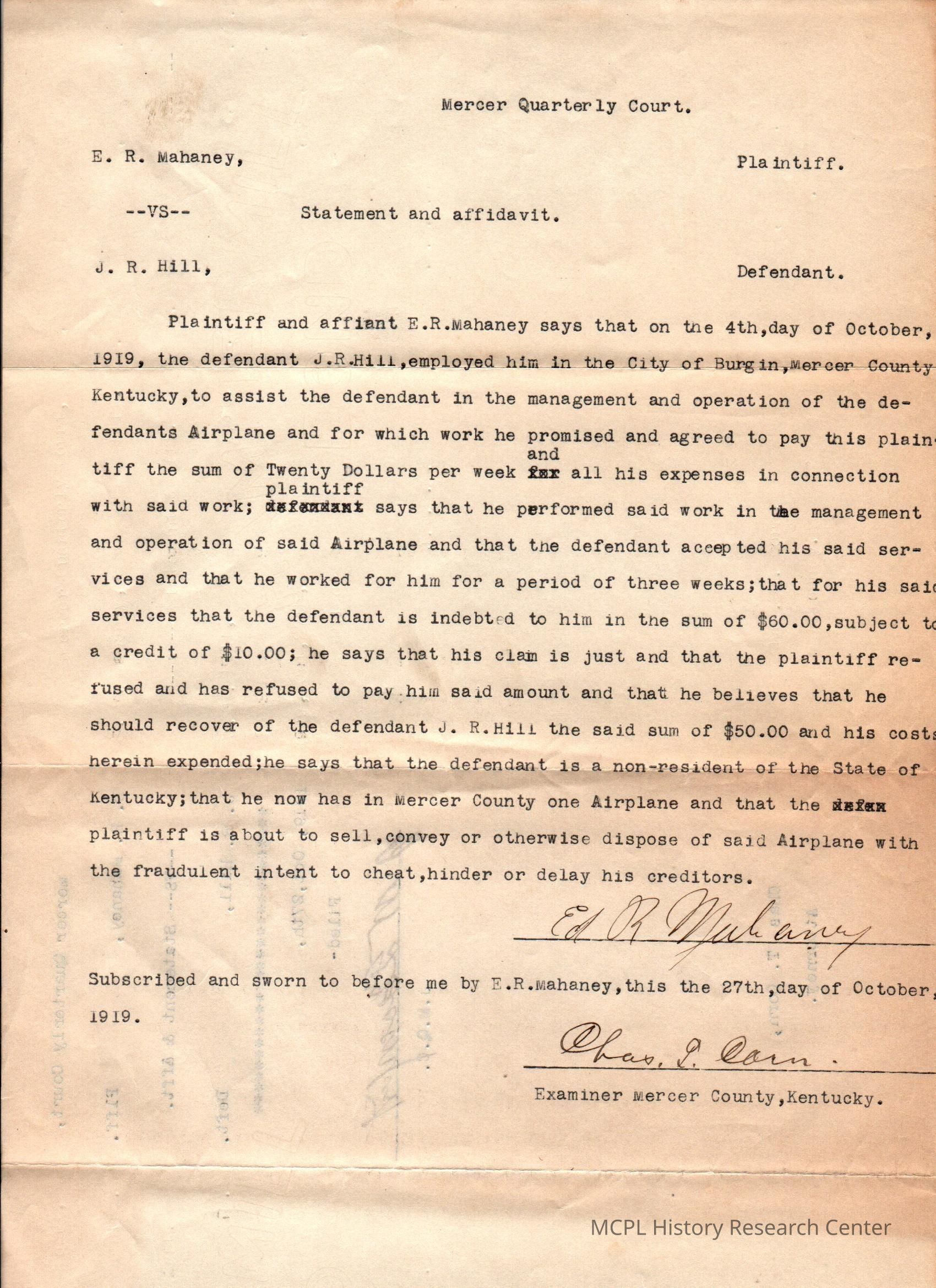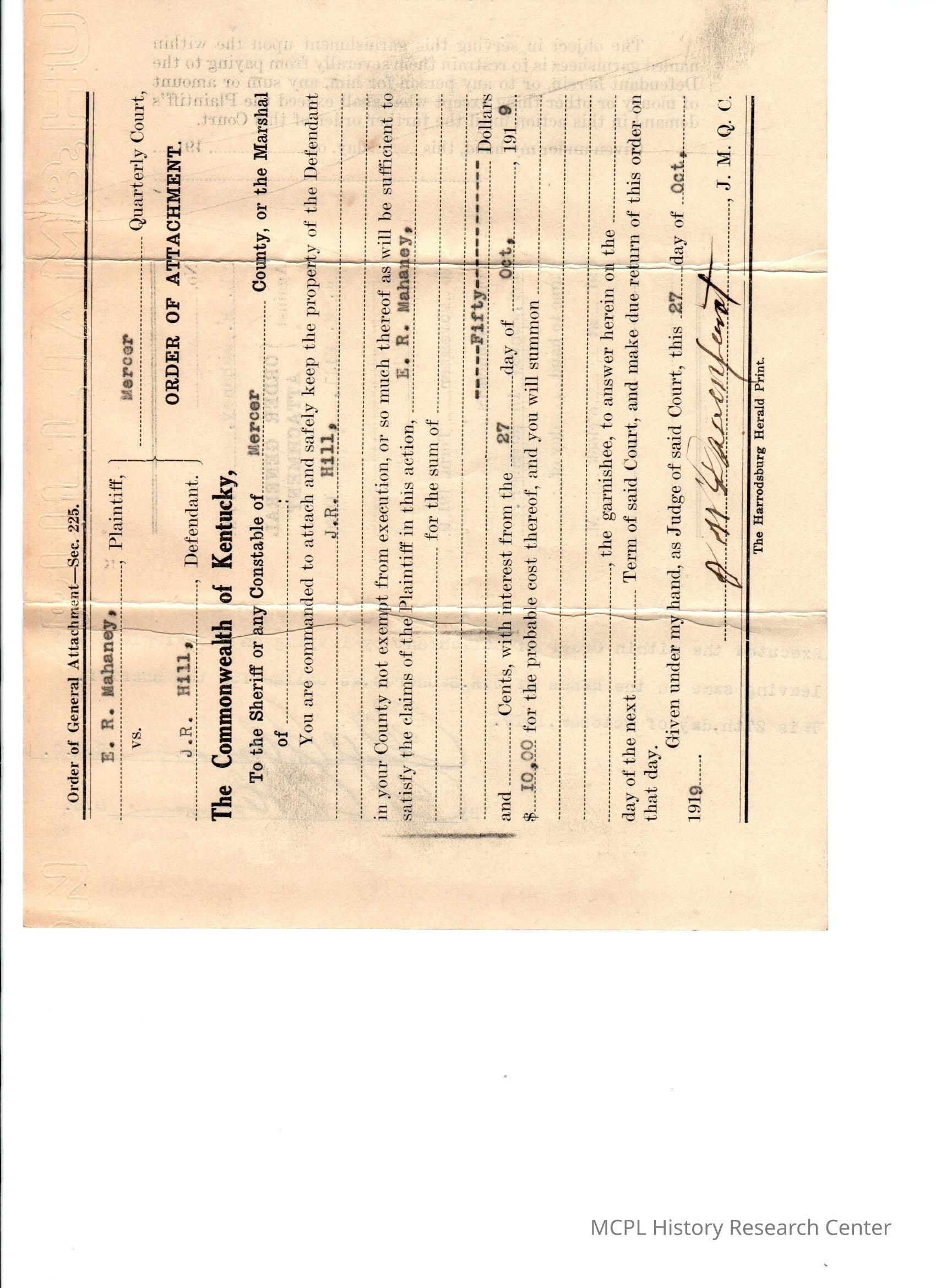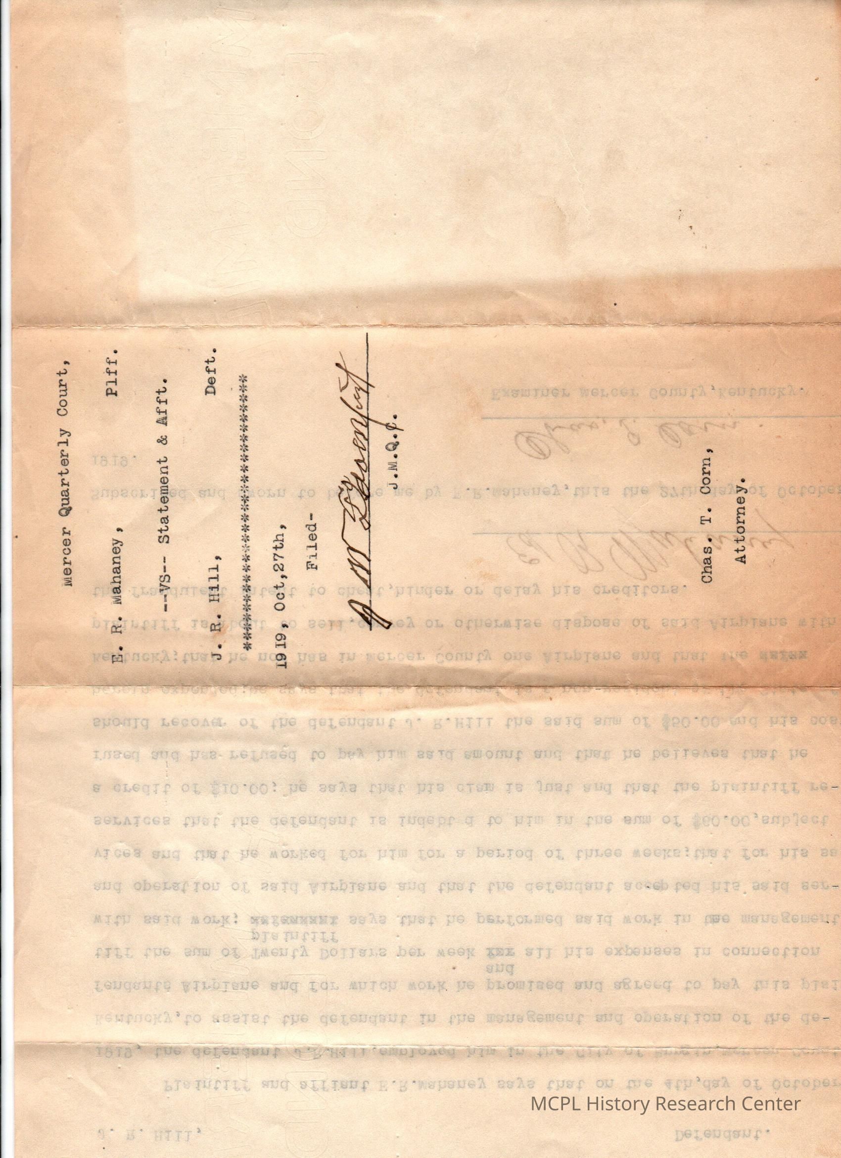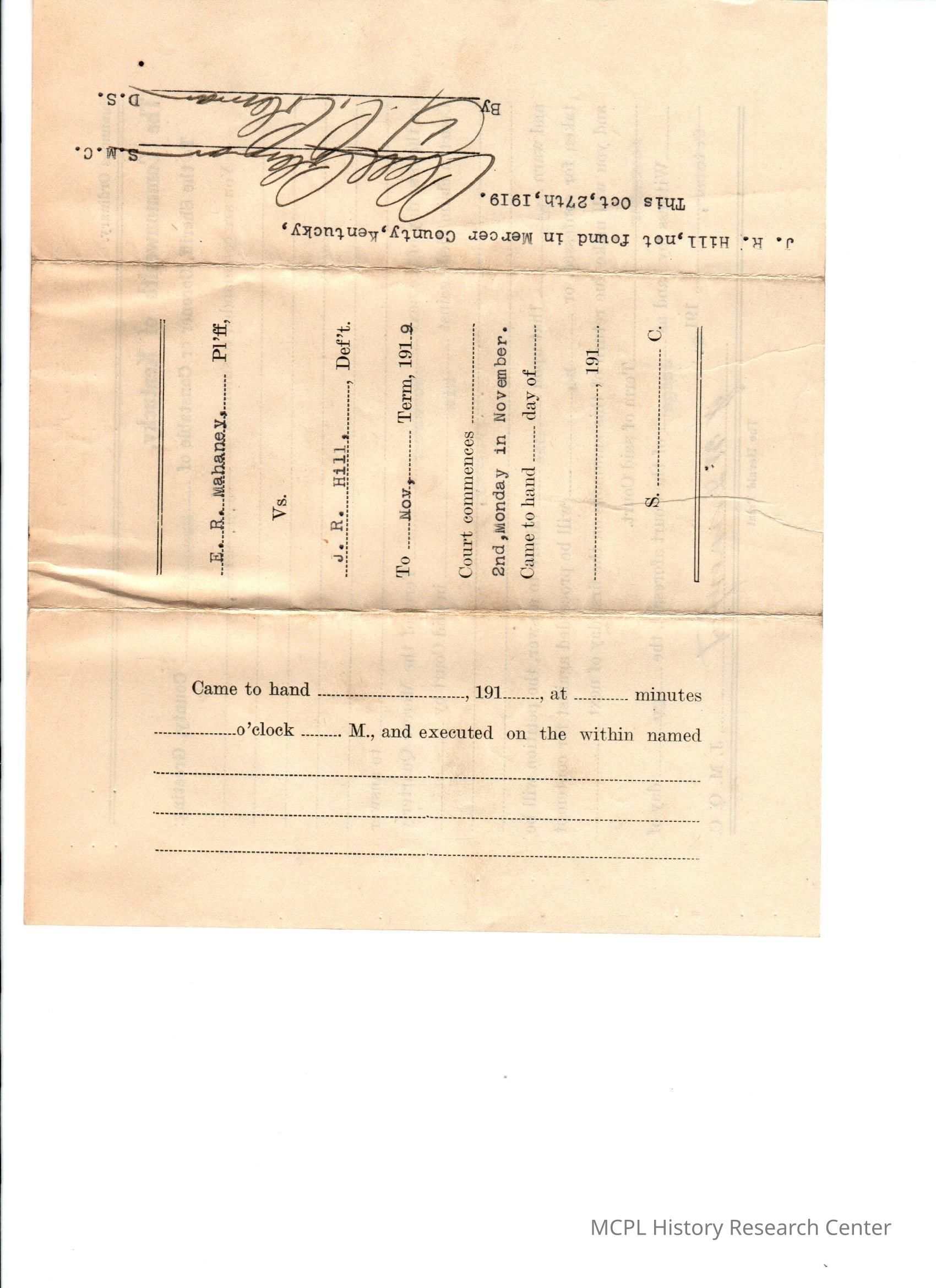 ER Mahawey v JR Hill