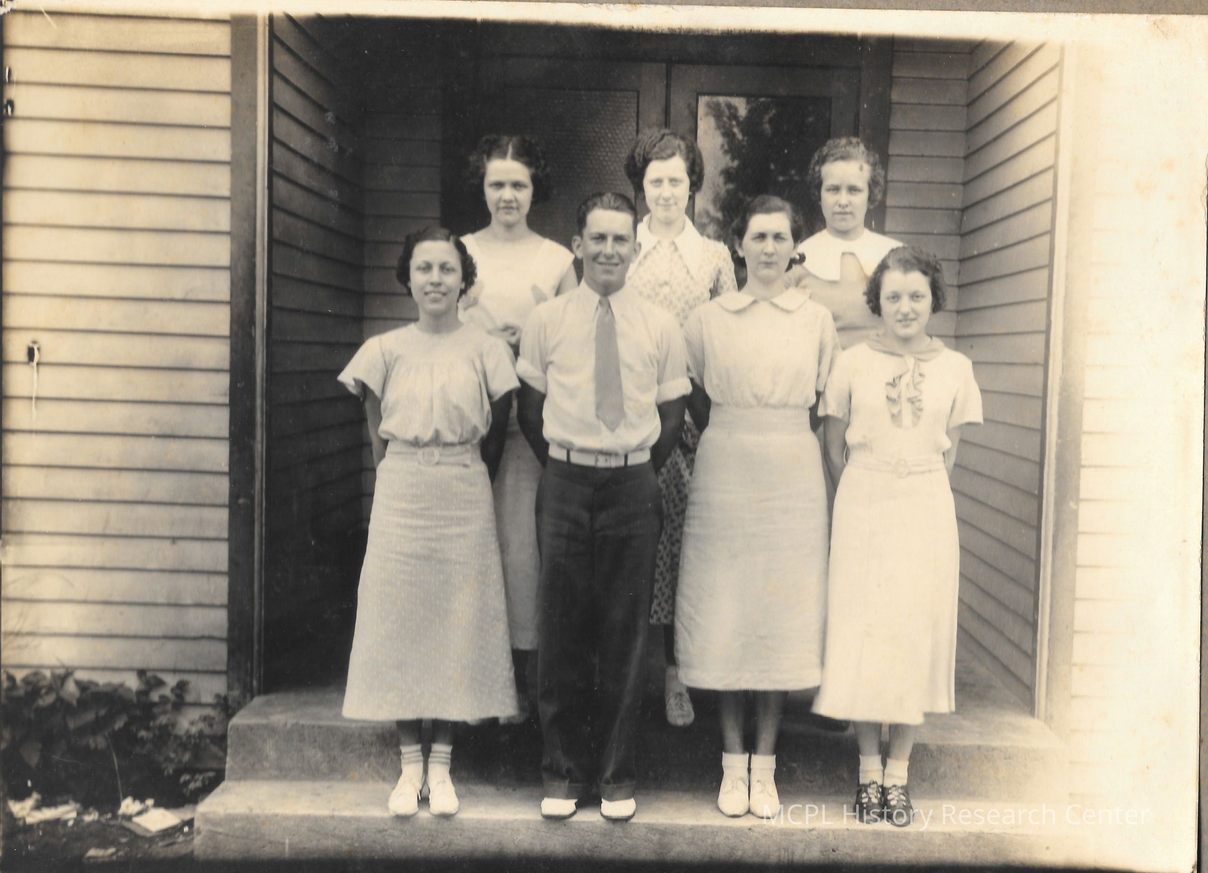 Pictured on the front row (l to r) are Maebella Sanders, Robert A Davenport, Irene Brown, and Zelma Demaree. In the back row is Kathleen Poulter, Lela Drury, and Loretta Coslow.Created By