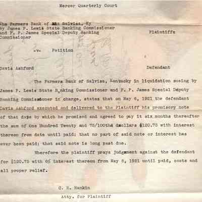 Farmers Bank of Salvisa v Davis Ashford