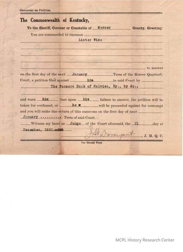 Farmers Bank of Salvisa v Lister Wise