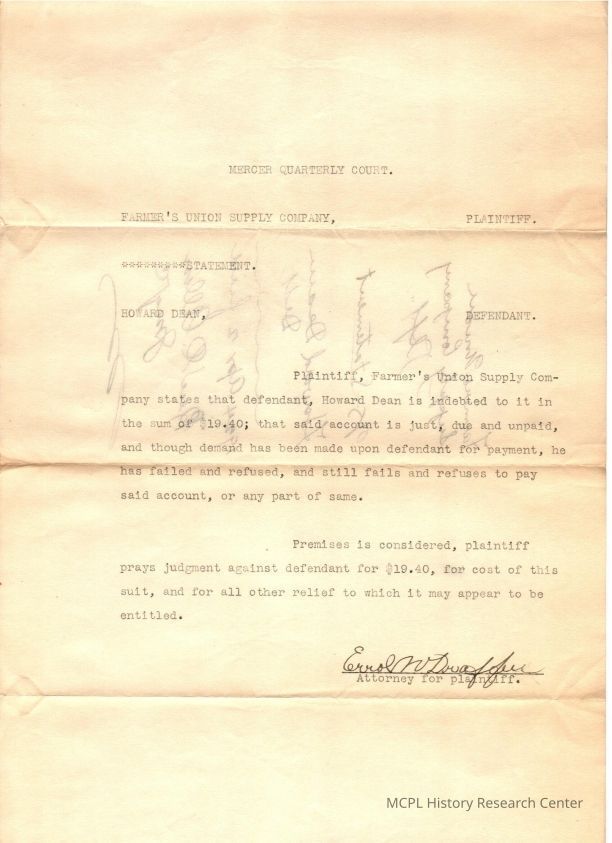 Farmers Union Supply v H Dean