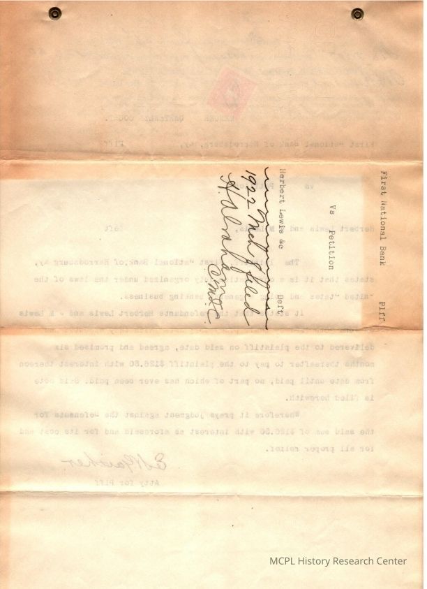 First National Bank of Harrodsburg v Herbert LewisEntry/Object ID