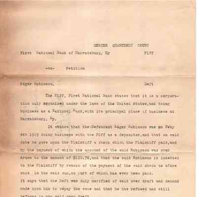 First National Bank v E Robinson
