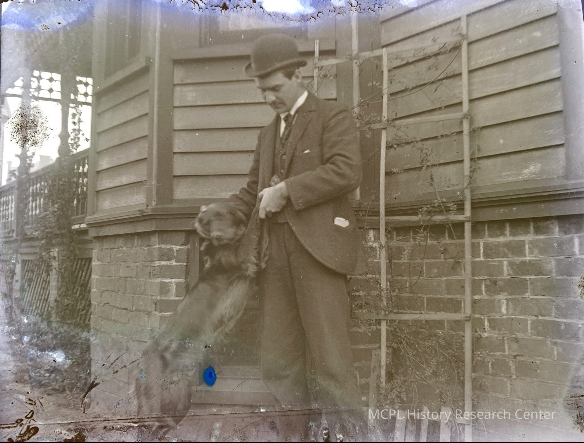 A man and his dog at home.Photograph Details