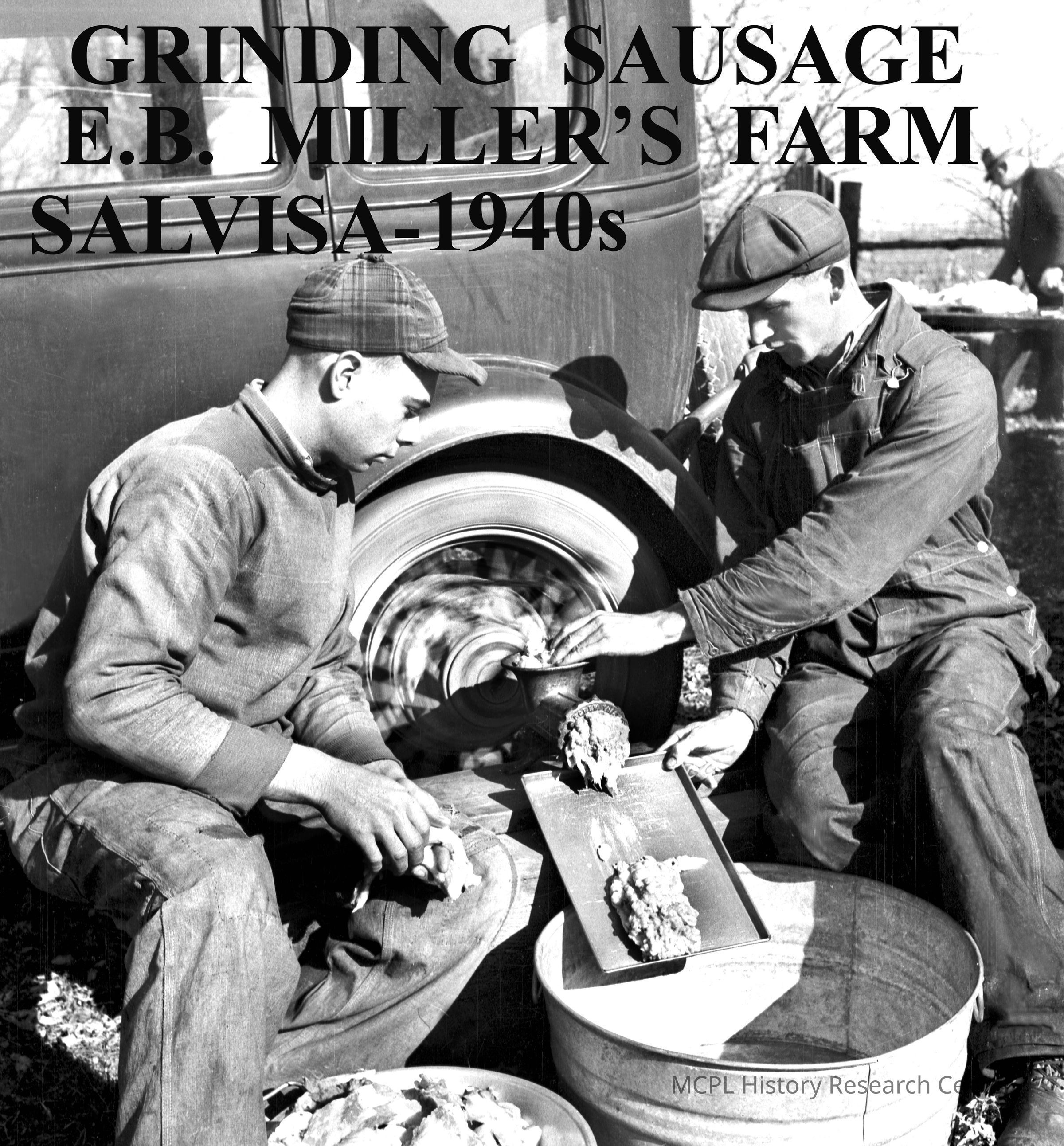 Grinding sausage on E.B. Miller's Farm in Salvisa