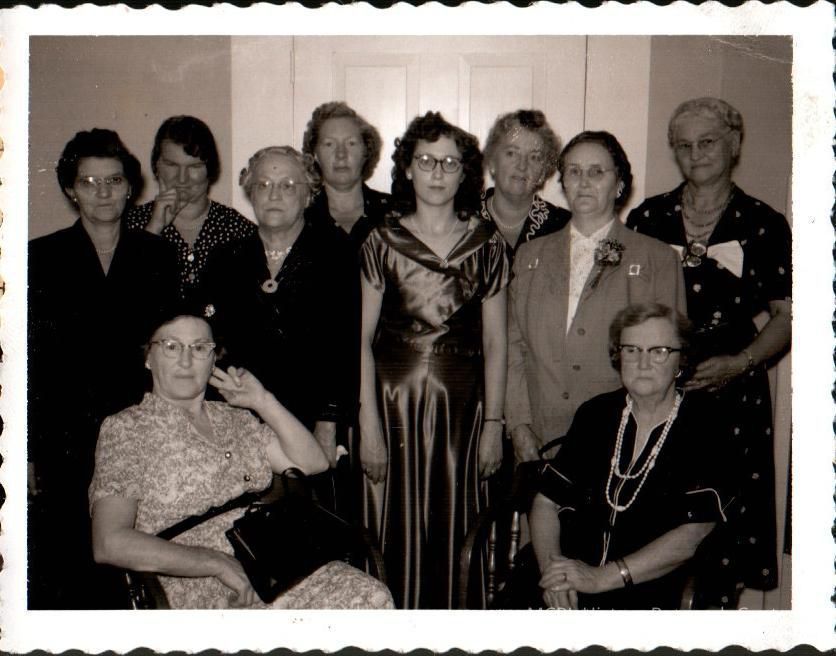 This photo contains 10 of the 15 correspondents working for the Harrodsburg Herald in 1956. They are (seated): Della Hankla, Mrs. Edgar Yates, (2nd Row L to R): Mrs. Ezra Hendren, Mrs. W.R. Moore, Mrs. James E. Baker, Mrs. R.S. Noel, (Back Row L to R) Mrs. Albert Pike, Mrs. Raymond Harley, Mrs. Joe Harley, Mrs. G.T. FreemanCollection