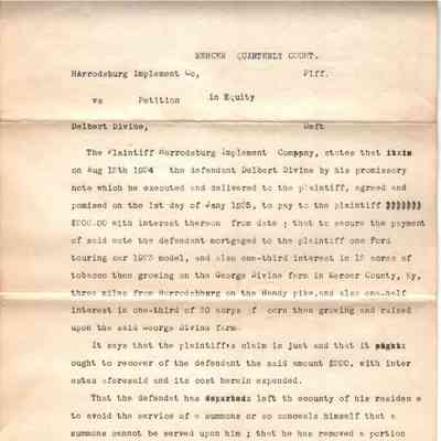 Harrodsburg Implement Co v Delbert Divine