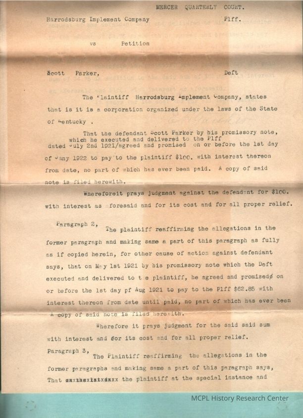 Harrodsburg Implement Co v S Parker