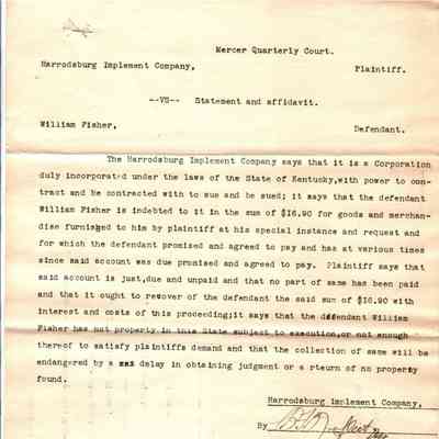 Harrodsburg Implement Company v William Disher