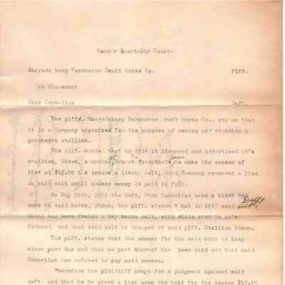 Harrodsburg Percheron Draft Horse Co v Dick Cornelius