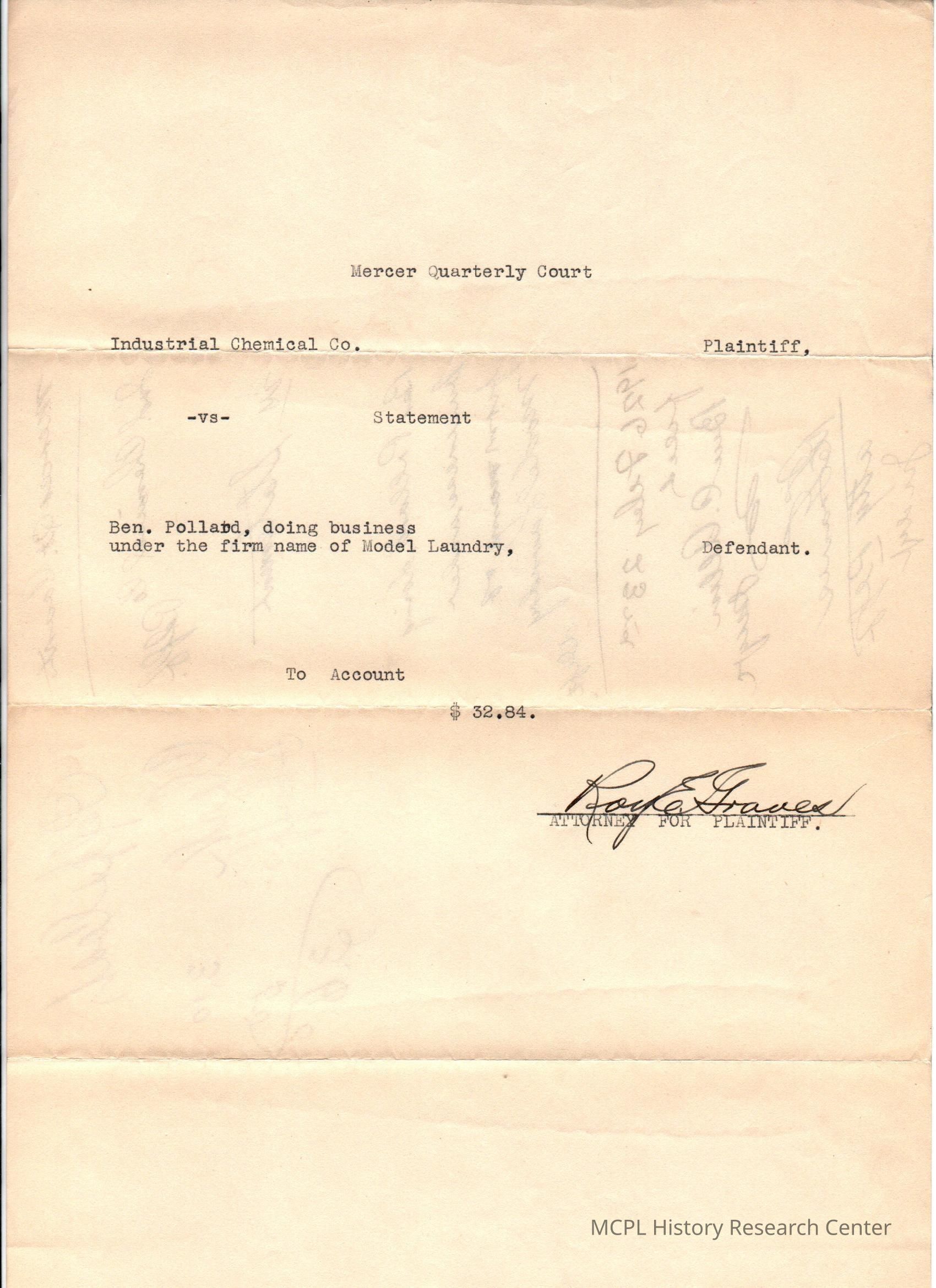 The Model Laundry Company is also listed as a defendantCollection