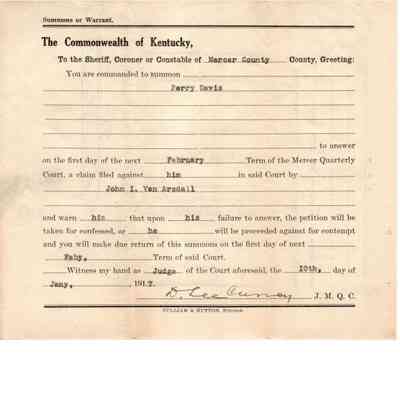 J Vanarsdall v Perry Davis