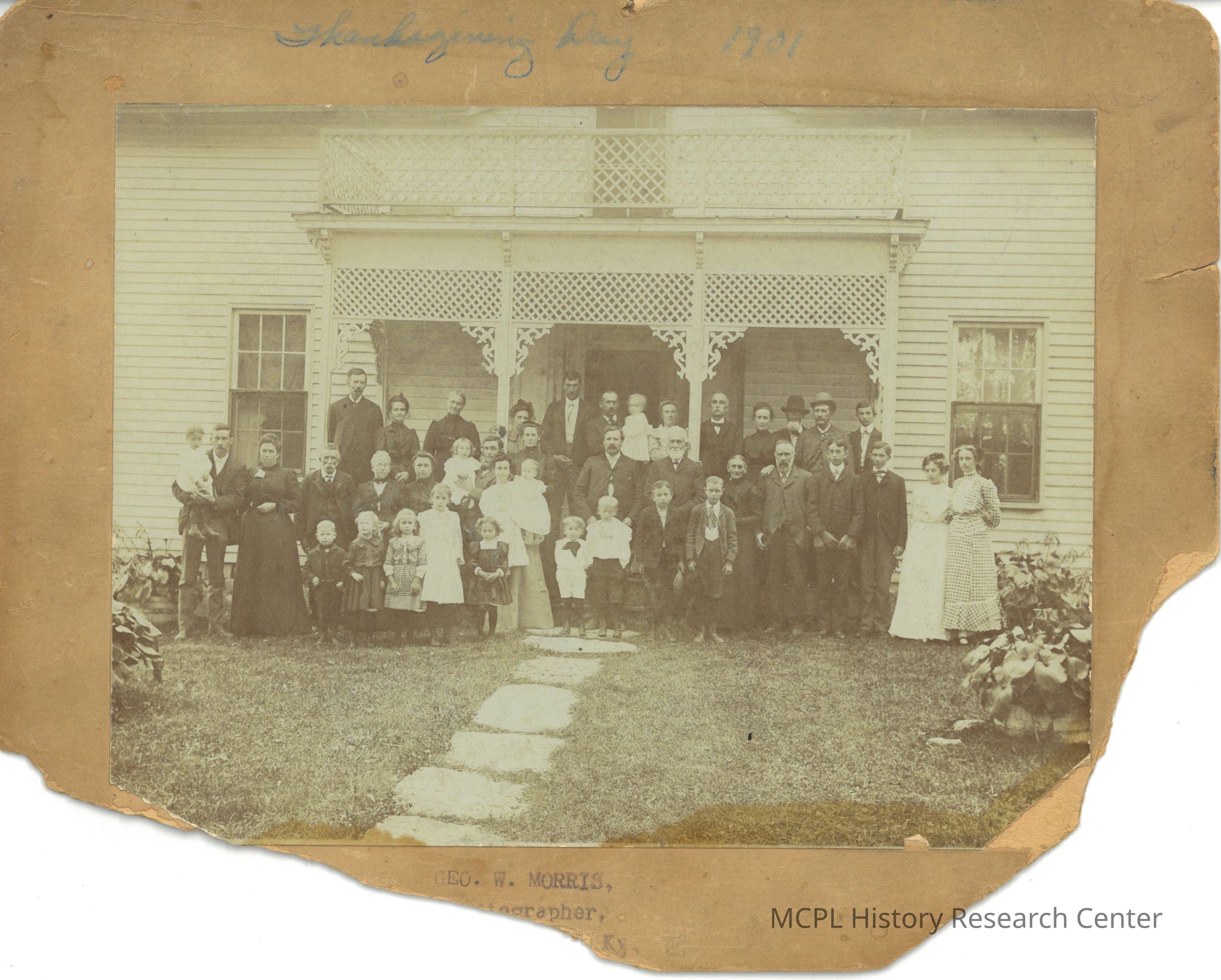 The James Wilson House is located in Sharpsville (Washington County), Ky. It was the first house on the left as you cross the covered bridge which is no longer there. This is a Sharp family reunion taken Thanksgiving Day in 1901.Created By