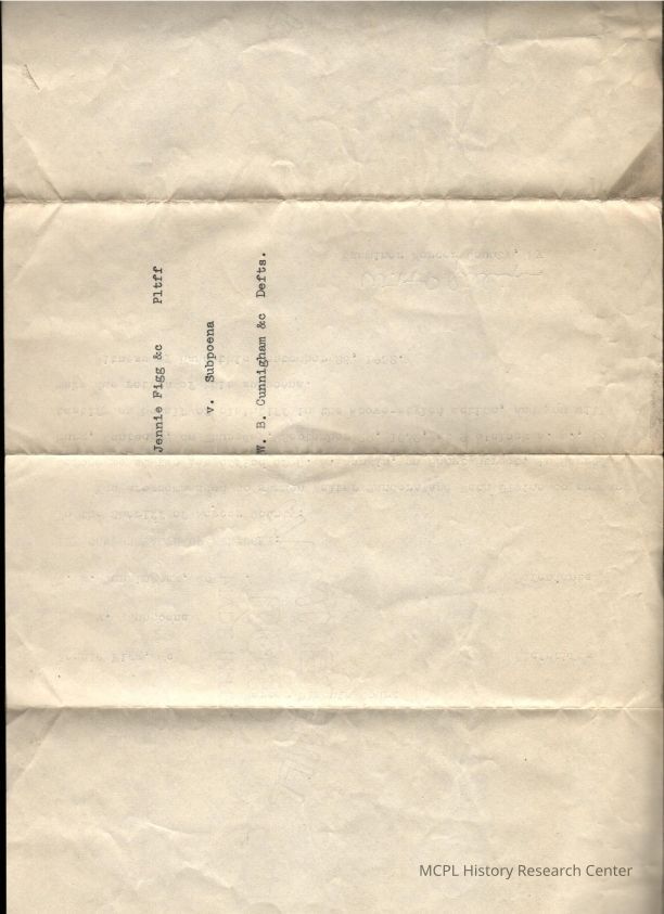 Jennie Figg v Walter SandersEntry/Object ID