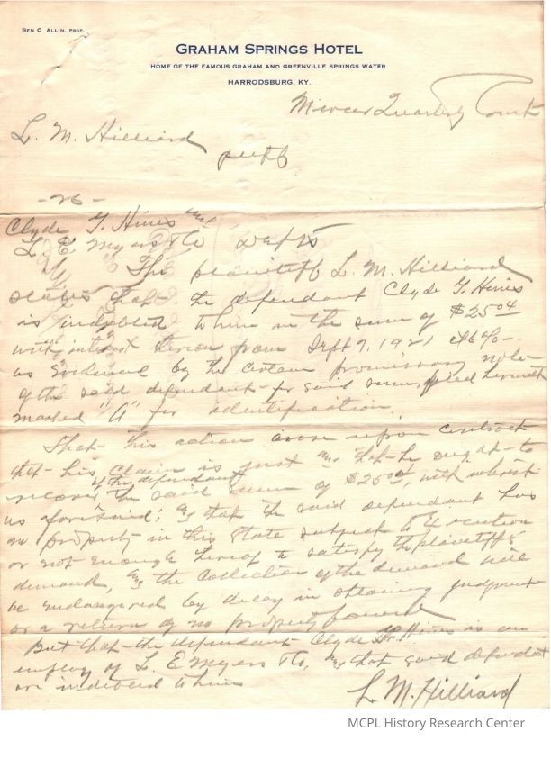 LM Hillard v Clyde G Hines