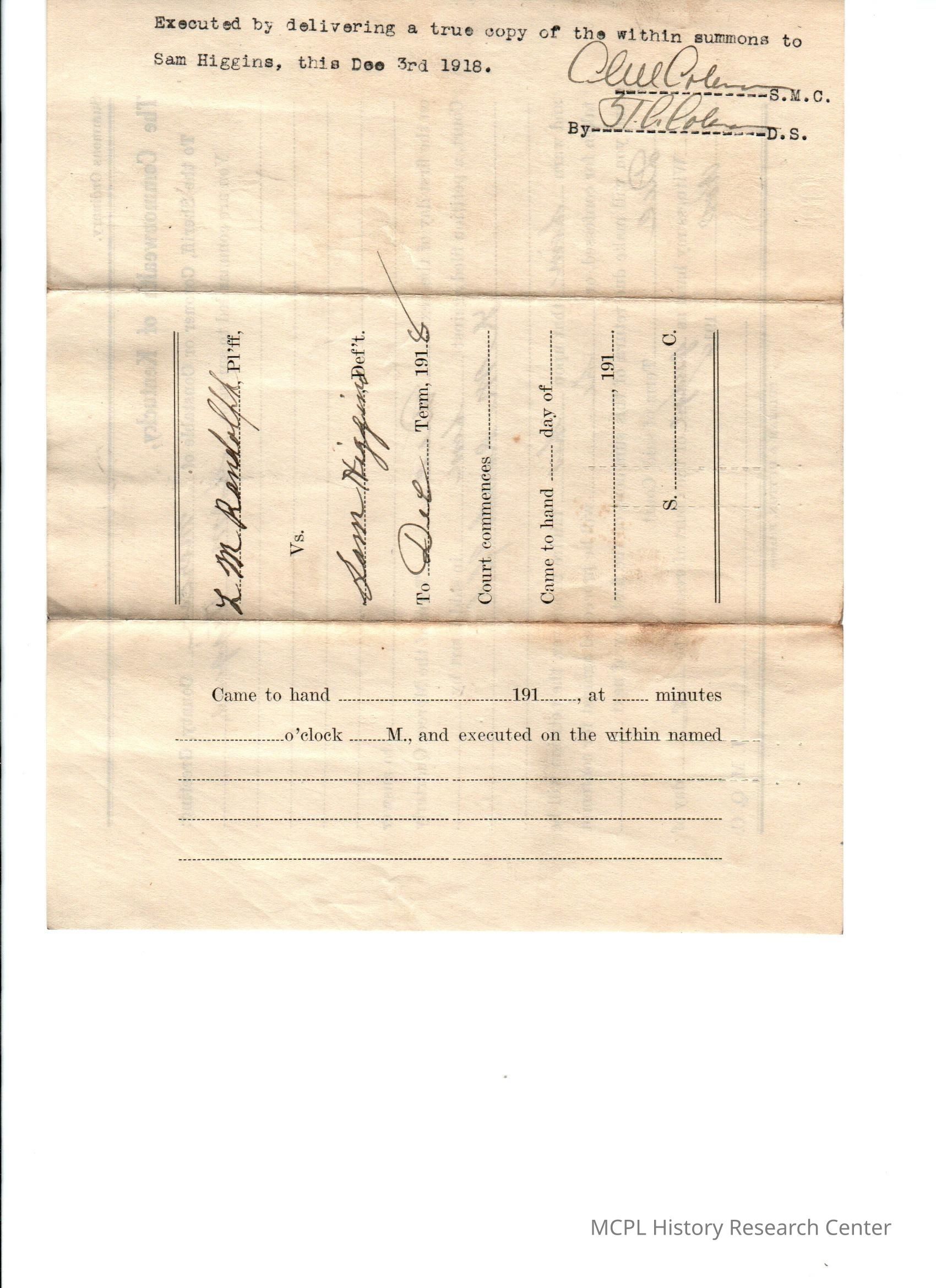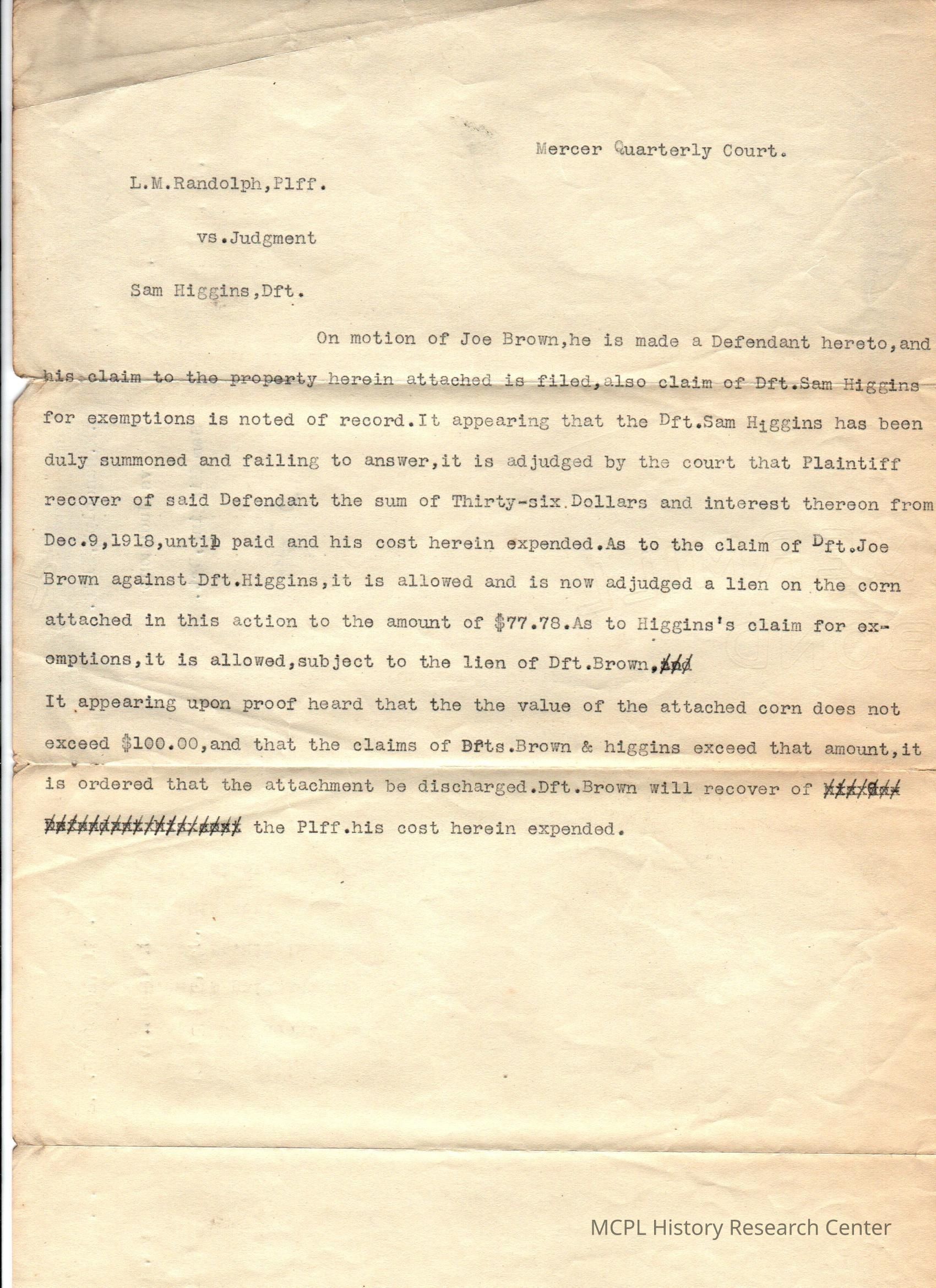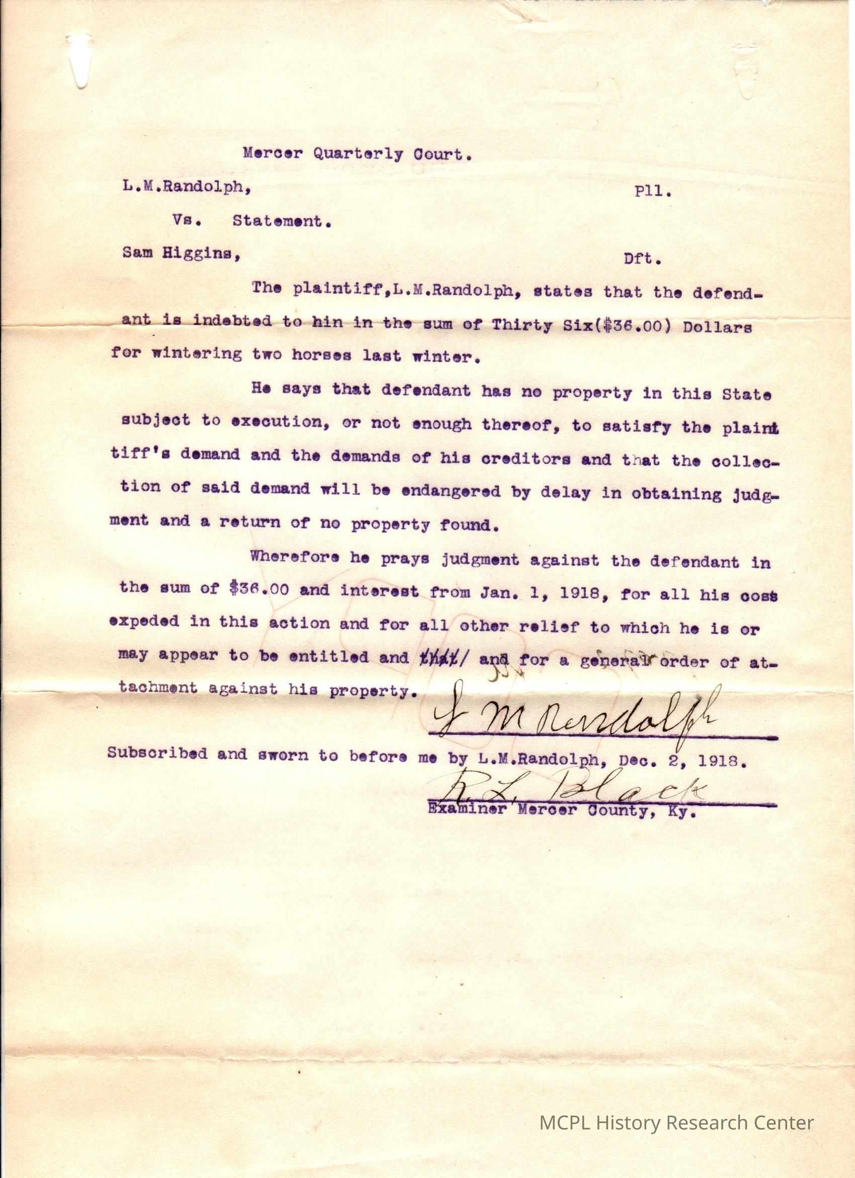 LM Randolph v S Higgins