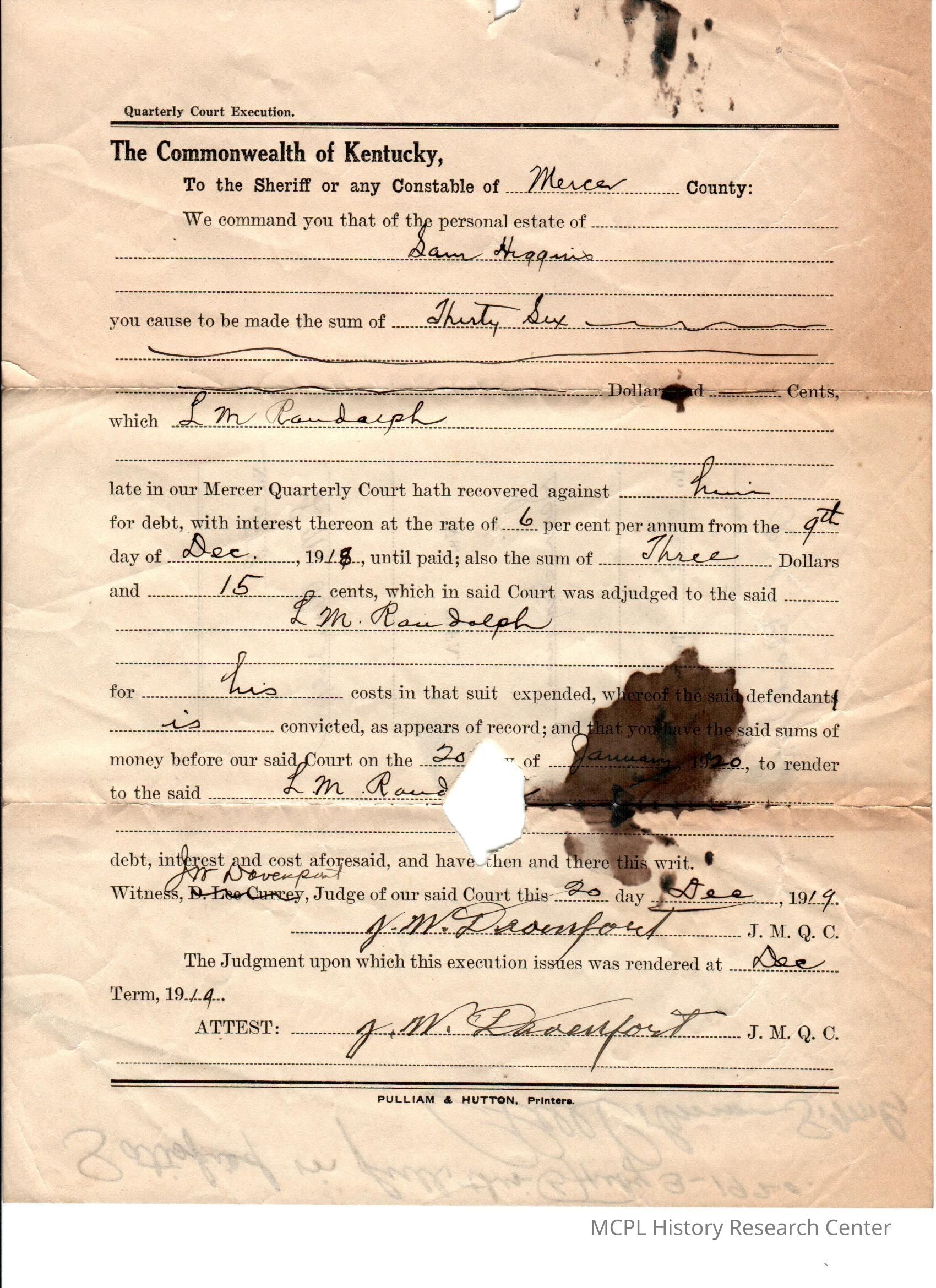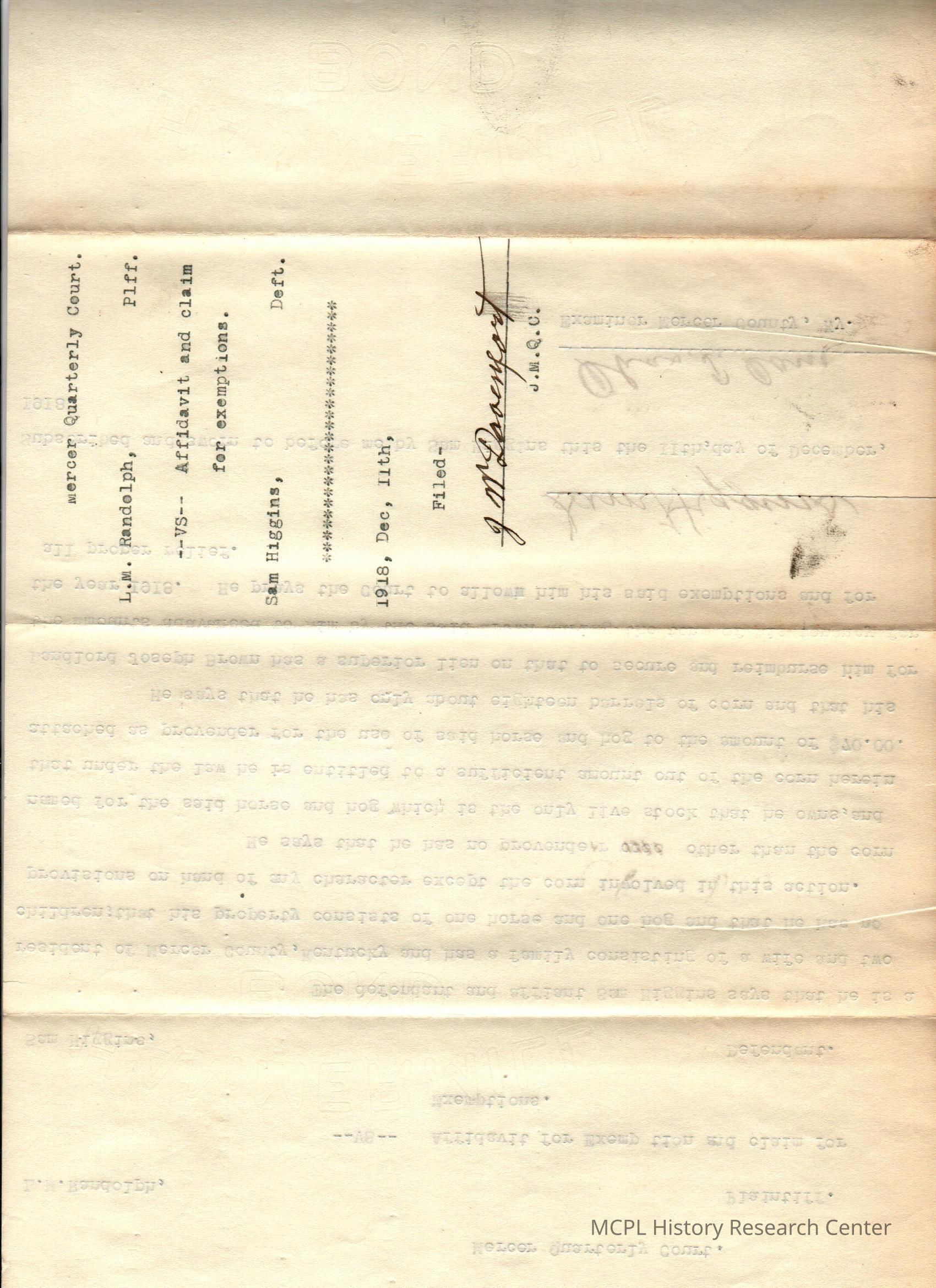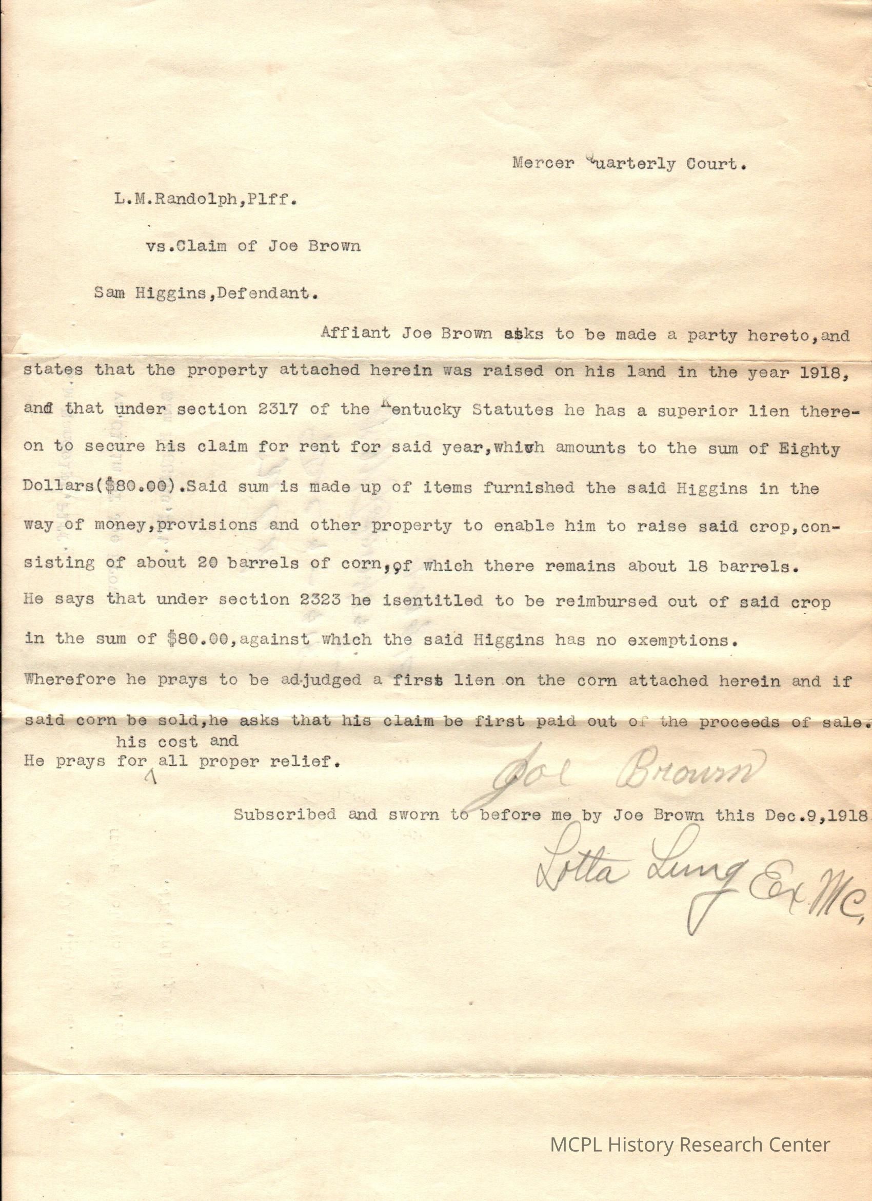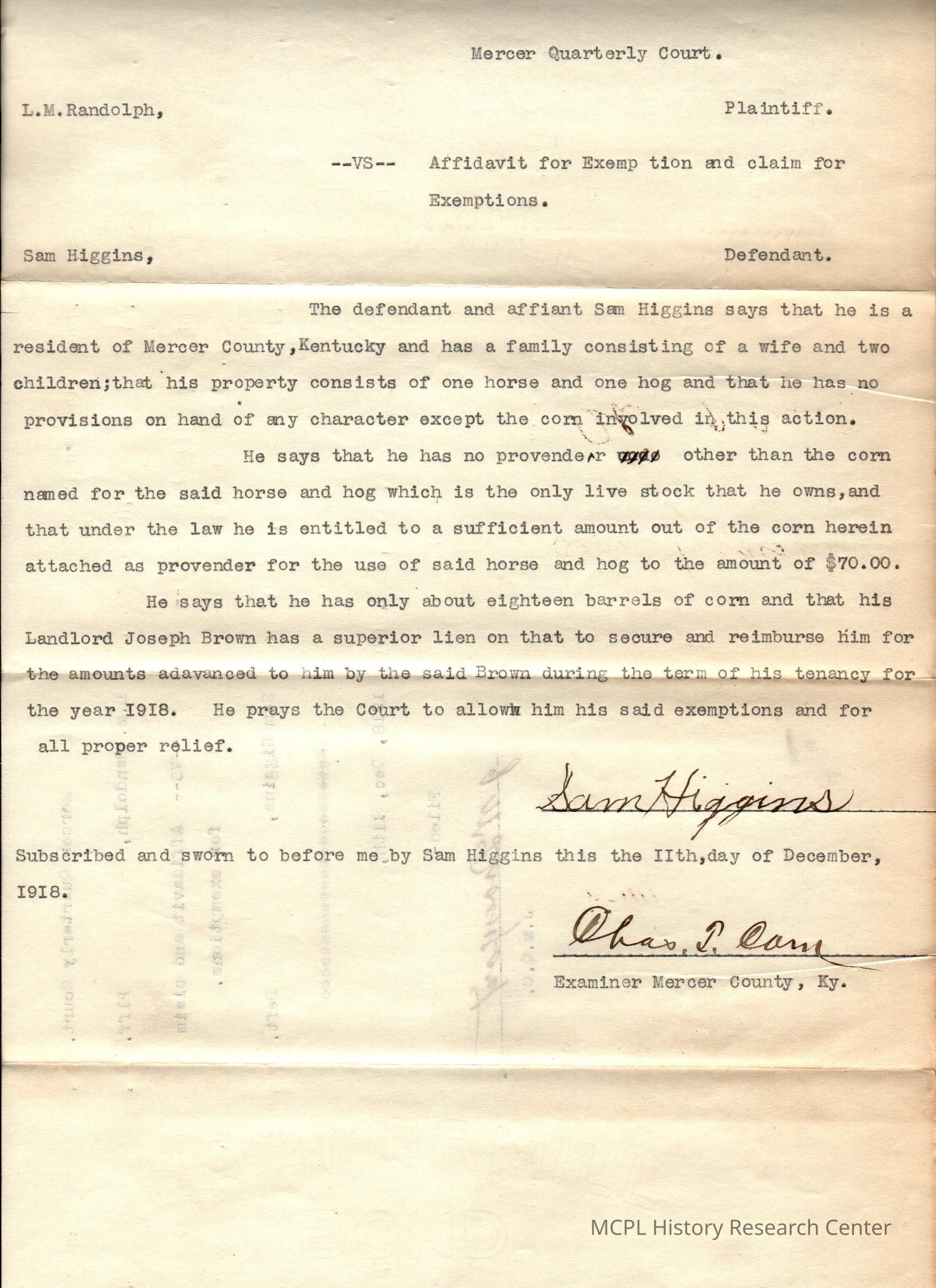 LM Randolph v S Higgins
