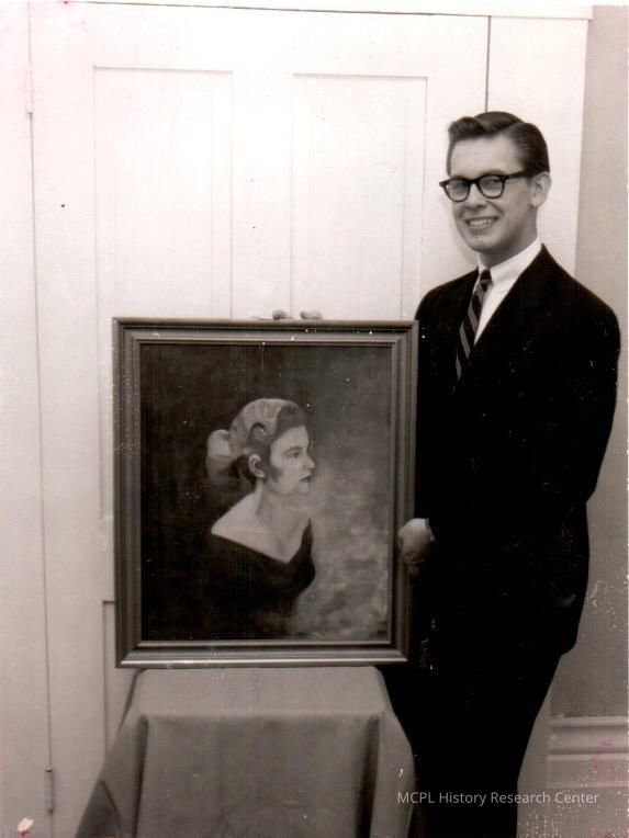Jack Bailey holds his portrait named Moonlight Mood which won second place in a district art contest at Peewee Valley. The contest was sponsered by the Kentucky Federation of Women's Clubs.Collection