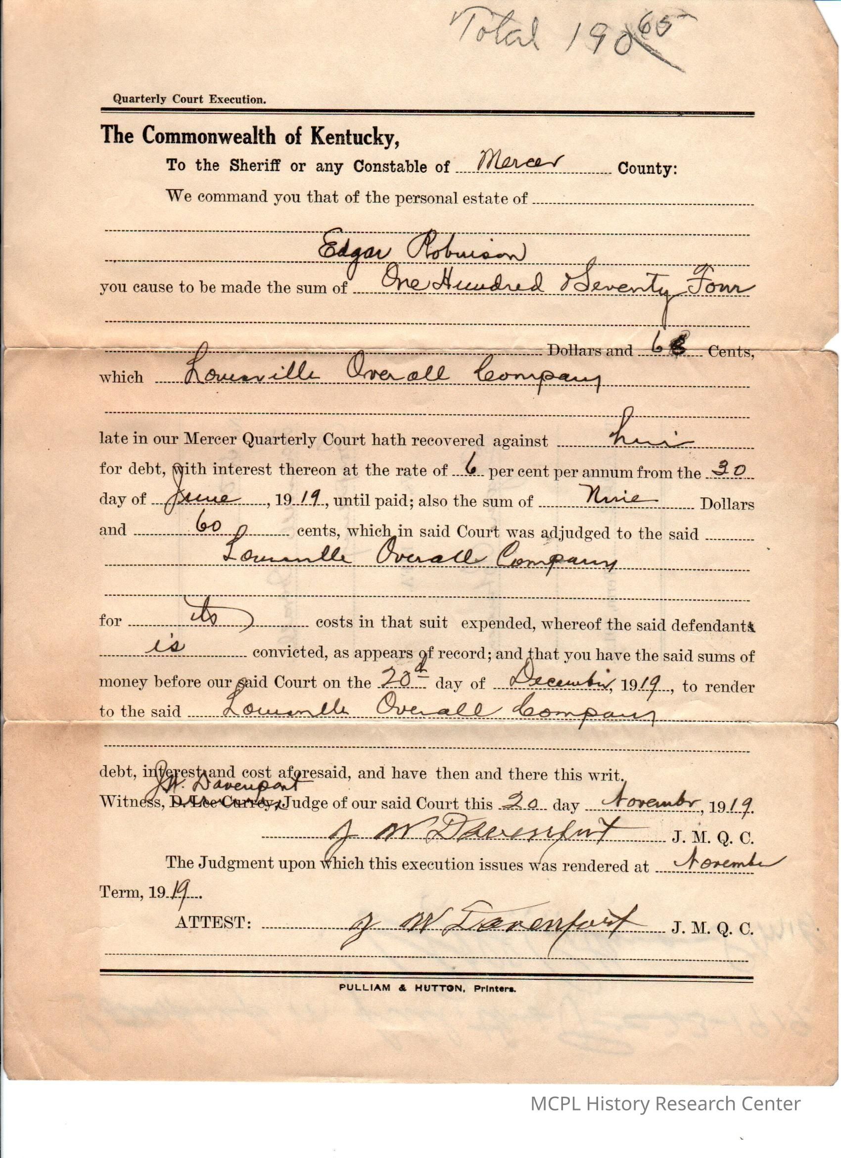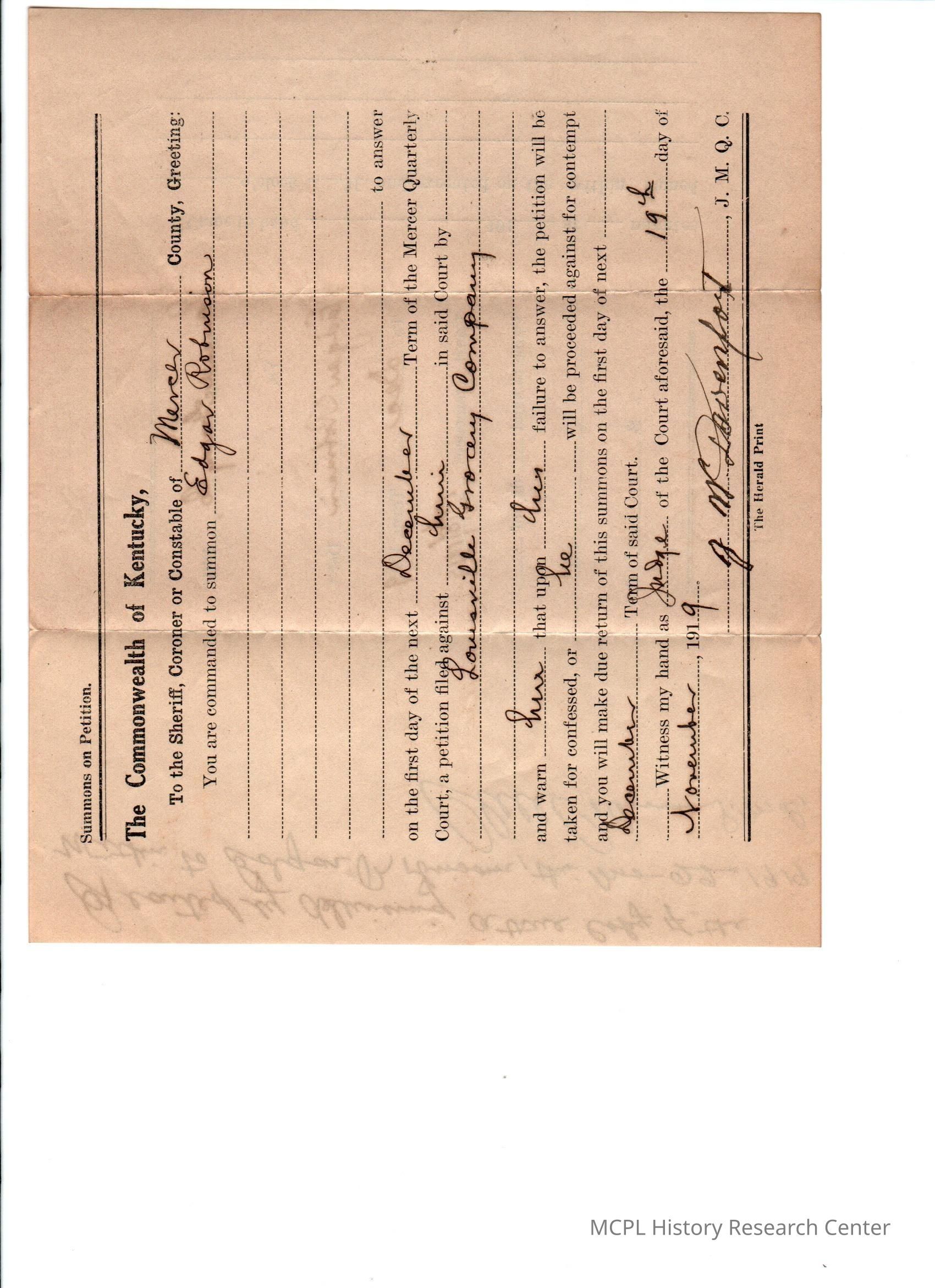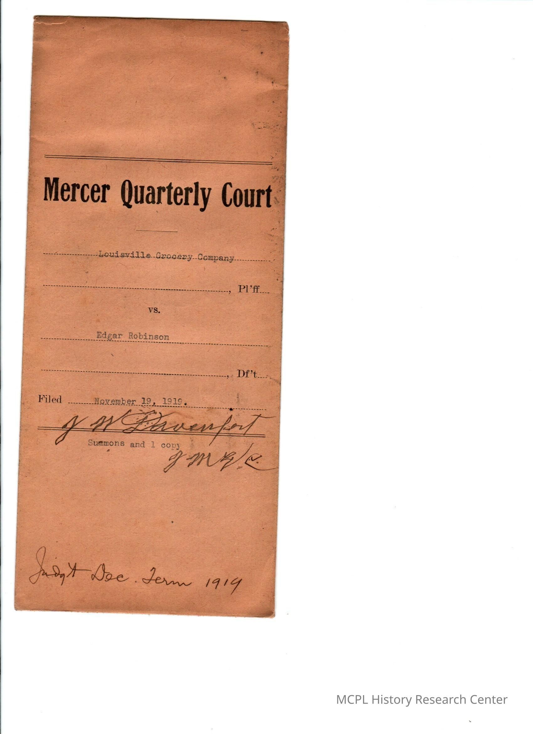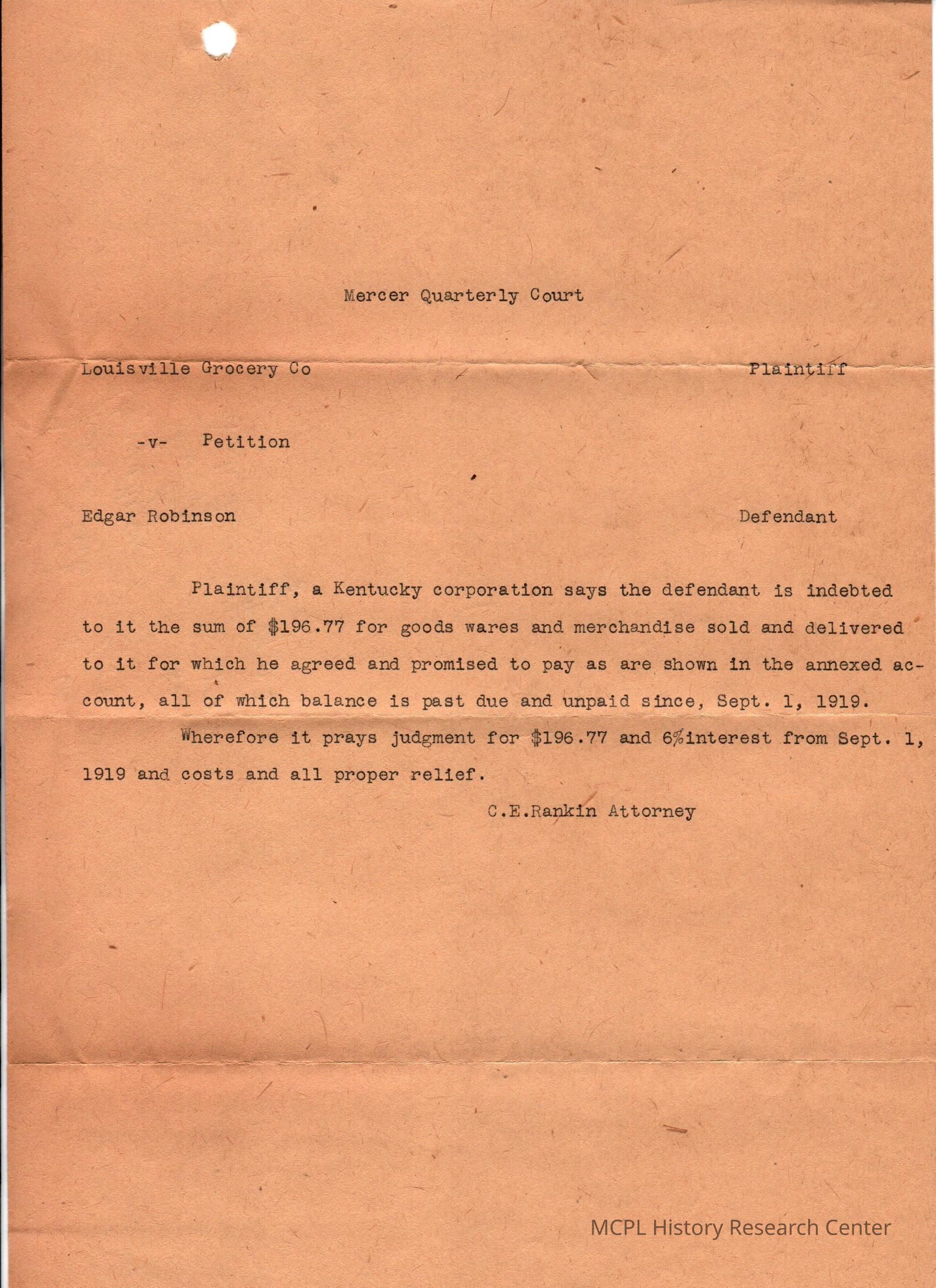 Louisville Grocery Co v Edgar Robinson