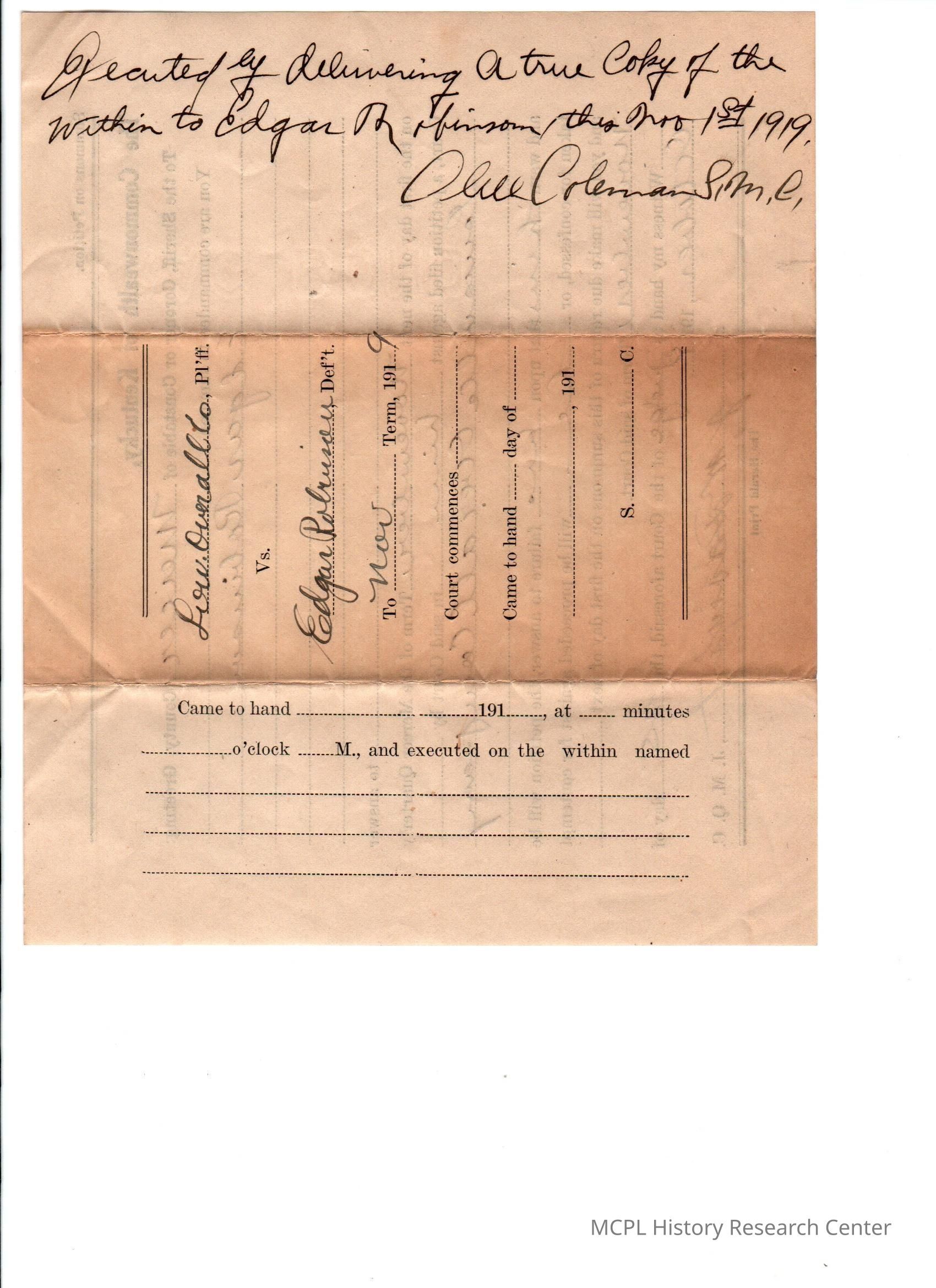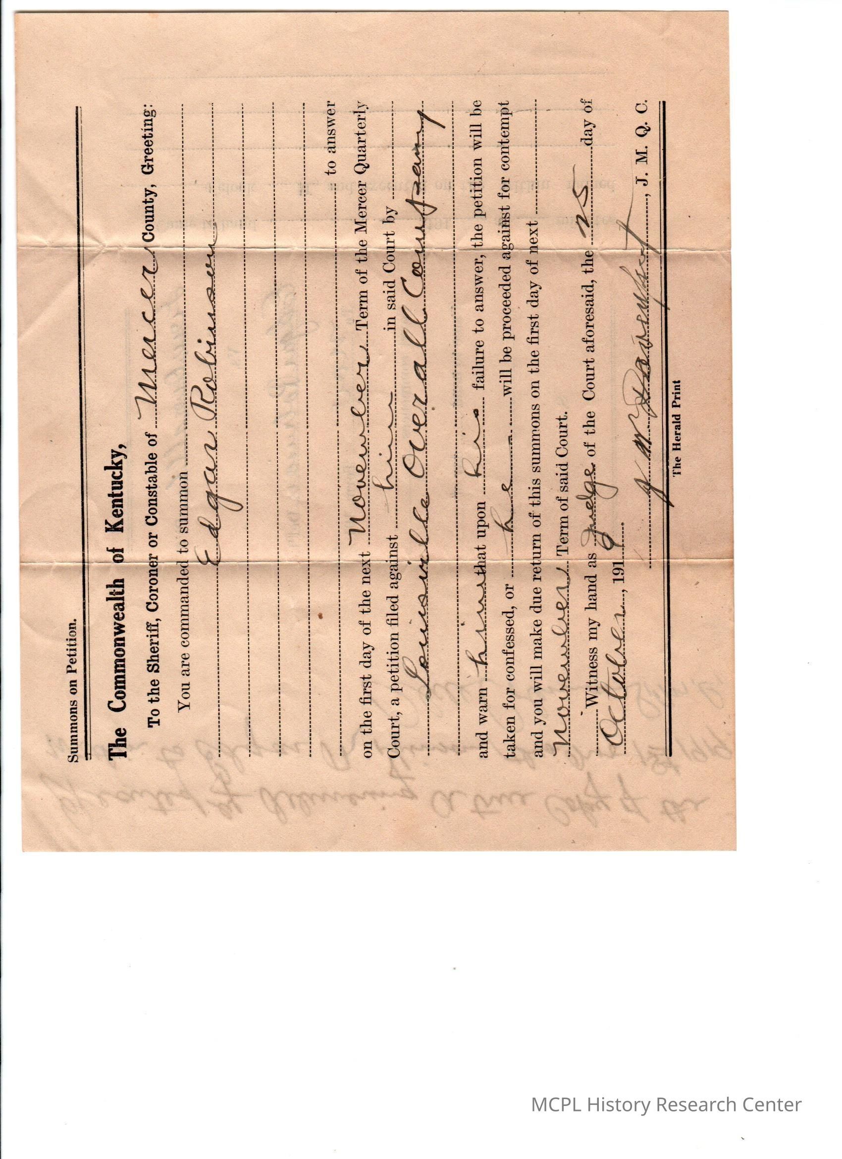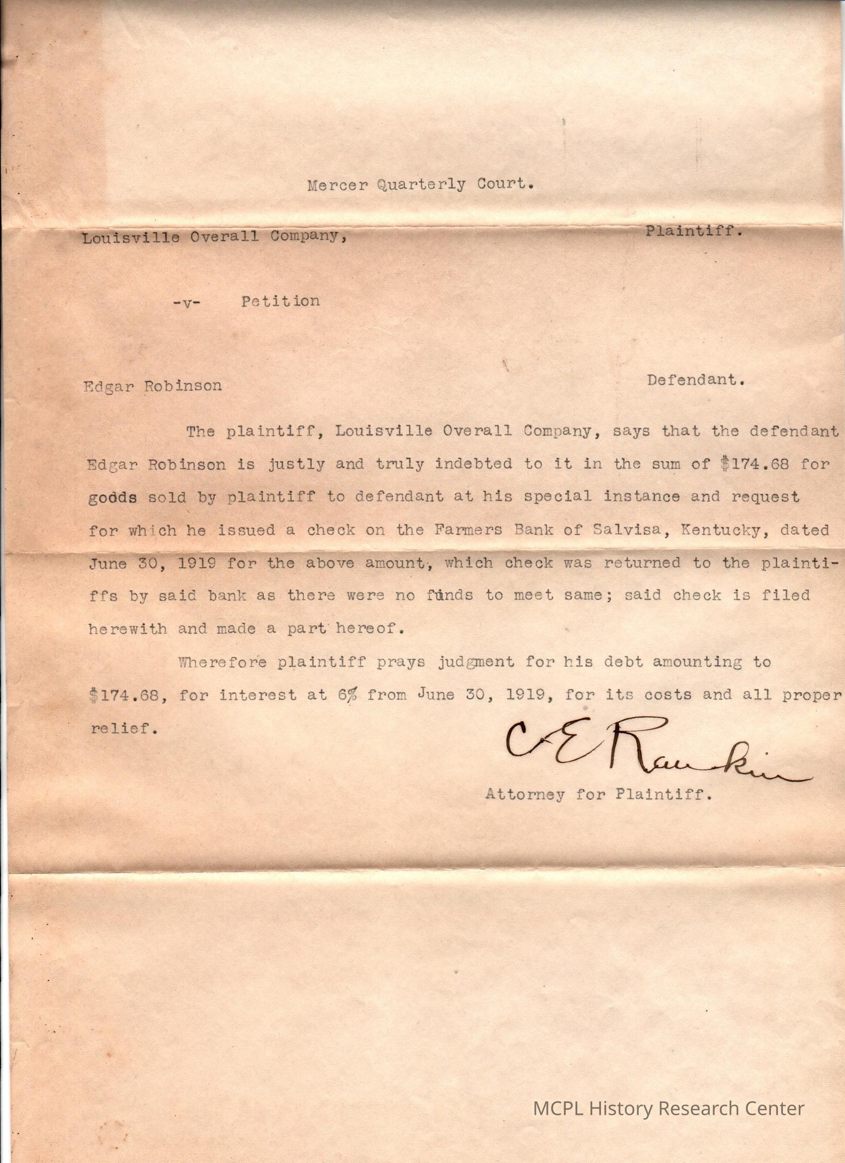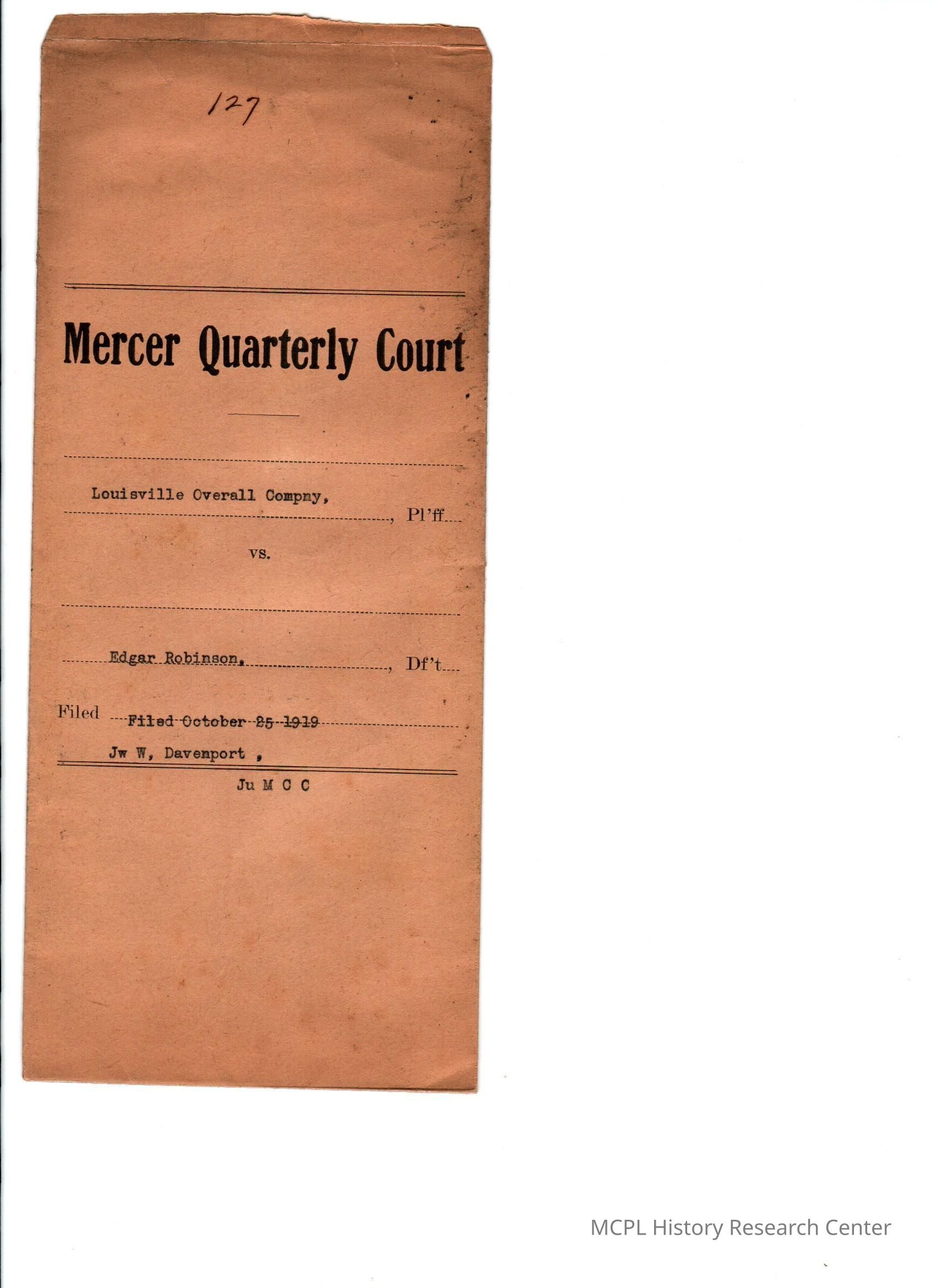 Louisville Overall Company v Edgar Robinson