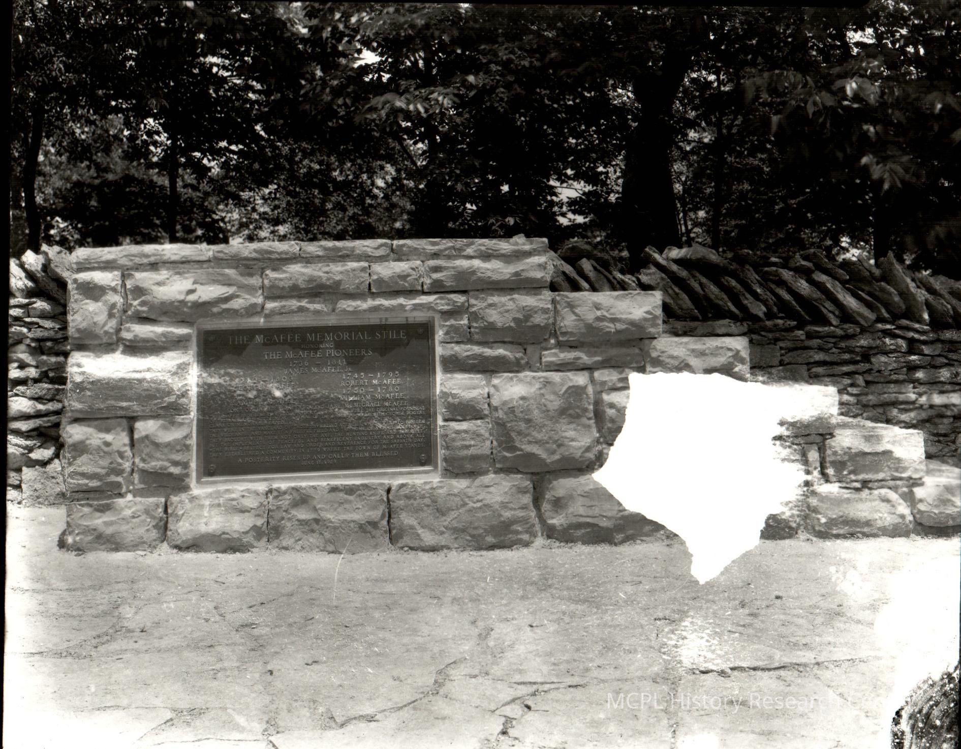 The steps (stile) leading to the tombstones in the McAfee portion of the cemetery at Fort Harrod State Park.Collection