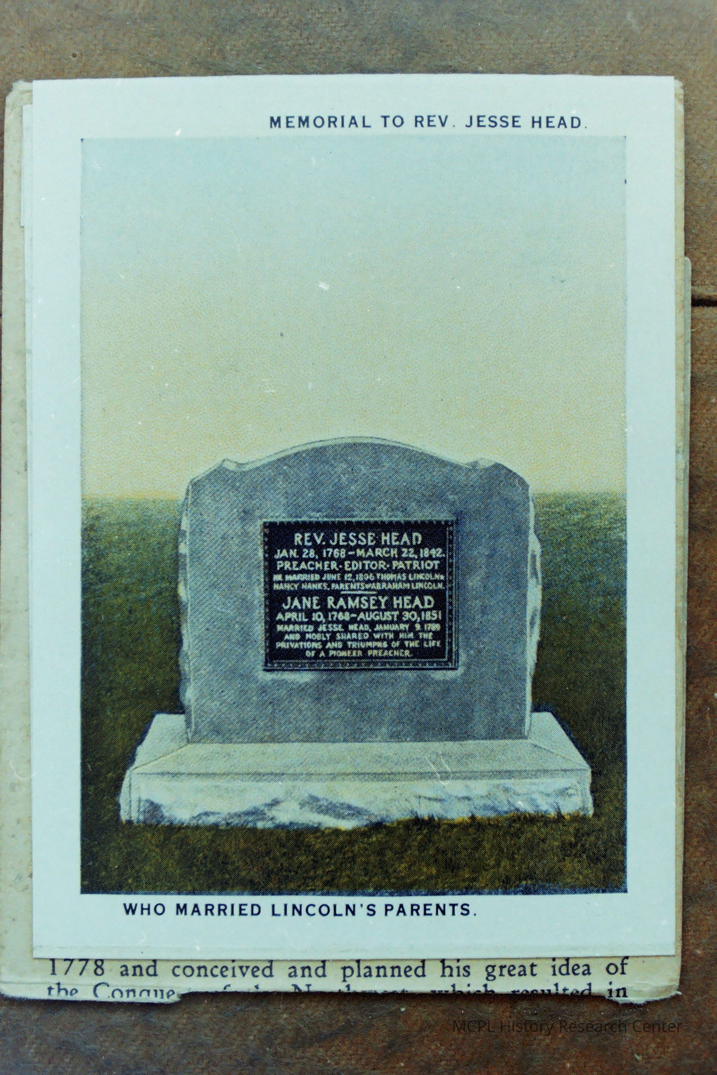 Memorial to Rev. Jesse Head