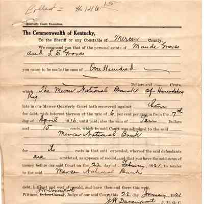 Mercer National Bank v Maude GravesEntry/Object ID