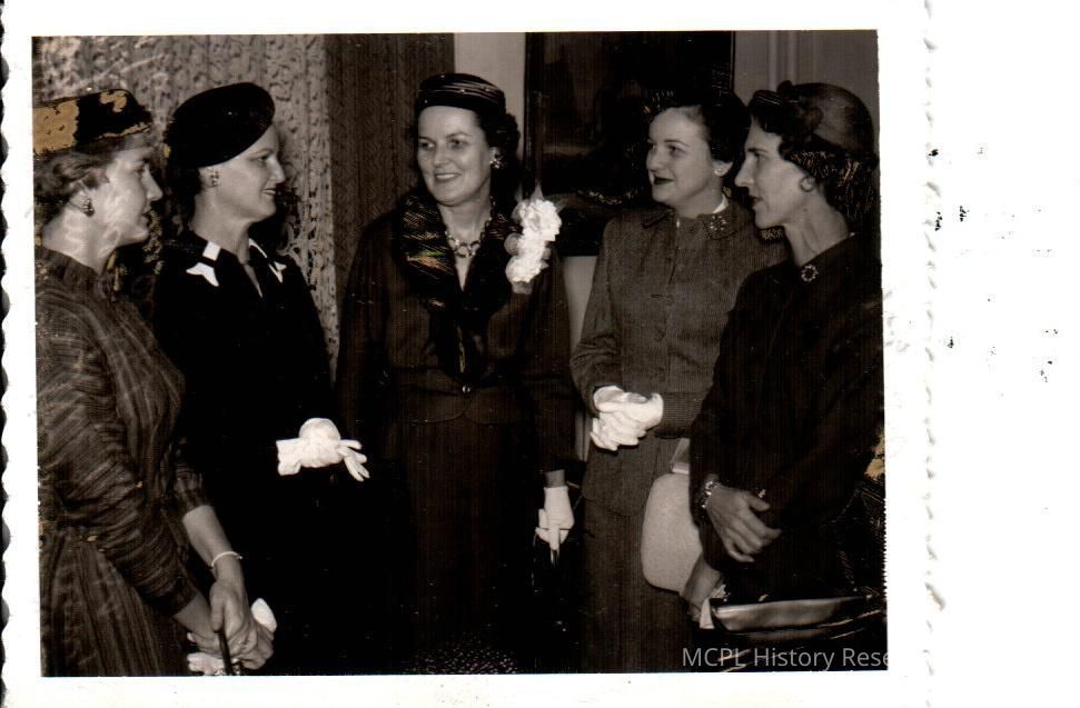 Mrs. Ramond Bolton, president of the state PTA talked with local PTA members. Pictured (L to R) areMrs. W.A. Wickliffe, Mrs. Glenn Keightley, Mrs. Bolton, Mrs. James Keightley, and Mrs. Charles SullivanCollection