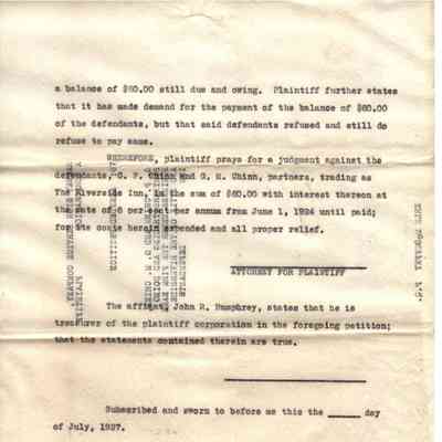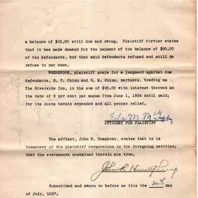 GM Chinn and the Riverside Inn are both also listed as defendants.Collection