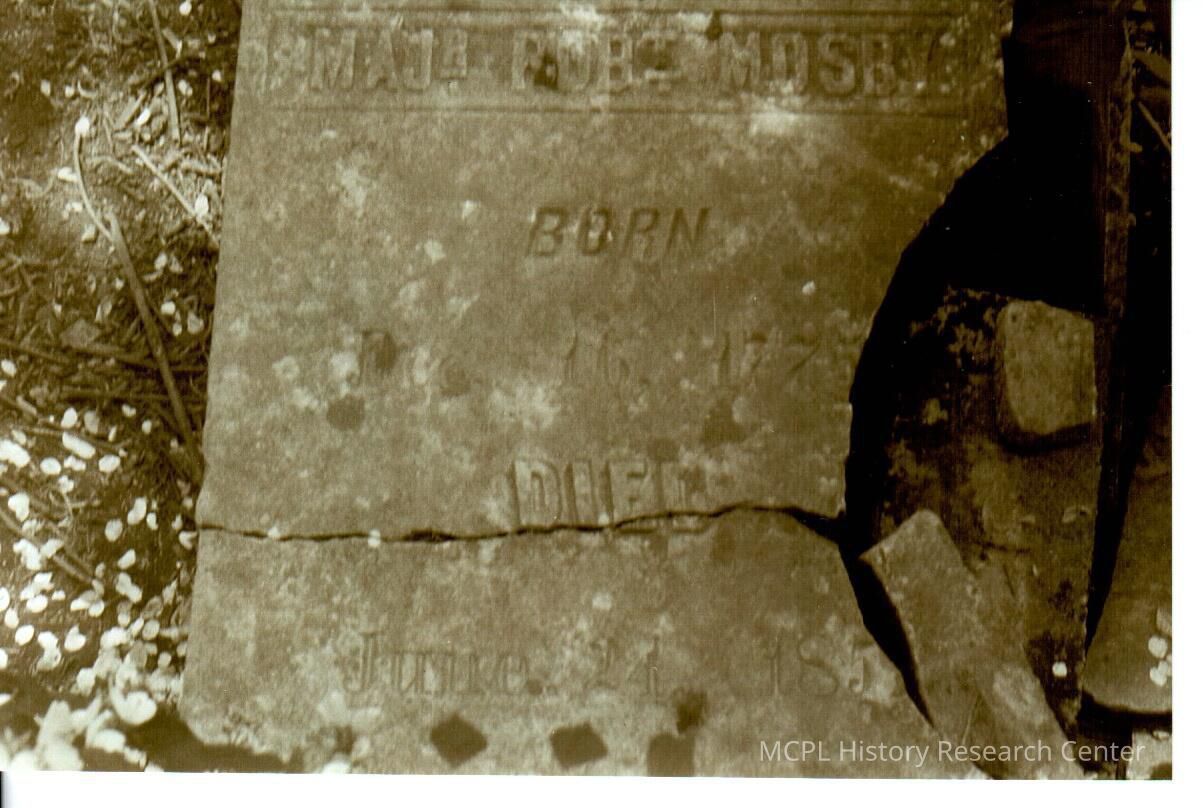 The grave of Robert Mosby. Mosby was born on December 16,1775 and died June 24, 1851. Colonel John Bowman who dies May 4, 1784. He built Bowman's Station (Bellevue) 3 miles east of Burgin in 1779.Collection