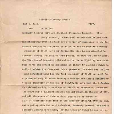 Robert Cull v Ky Central Life & Accident
