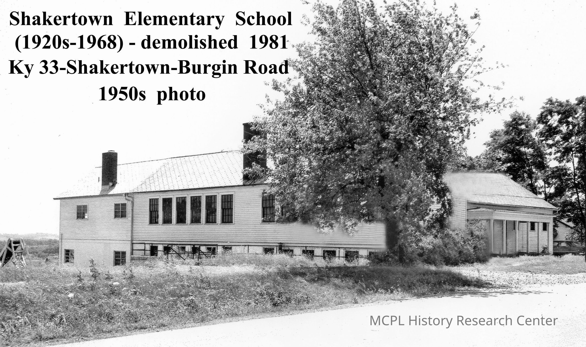 Shakertown Elementary existed from the 1920s-1968. The building was demolished in 1981.Photograph Details