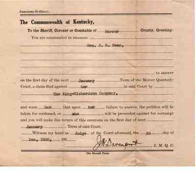 The King-Rchardson Co v Mrs JR Dean